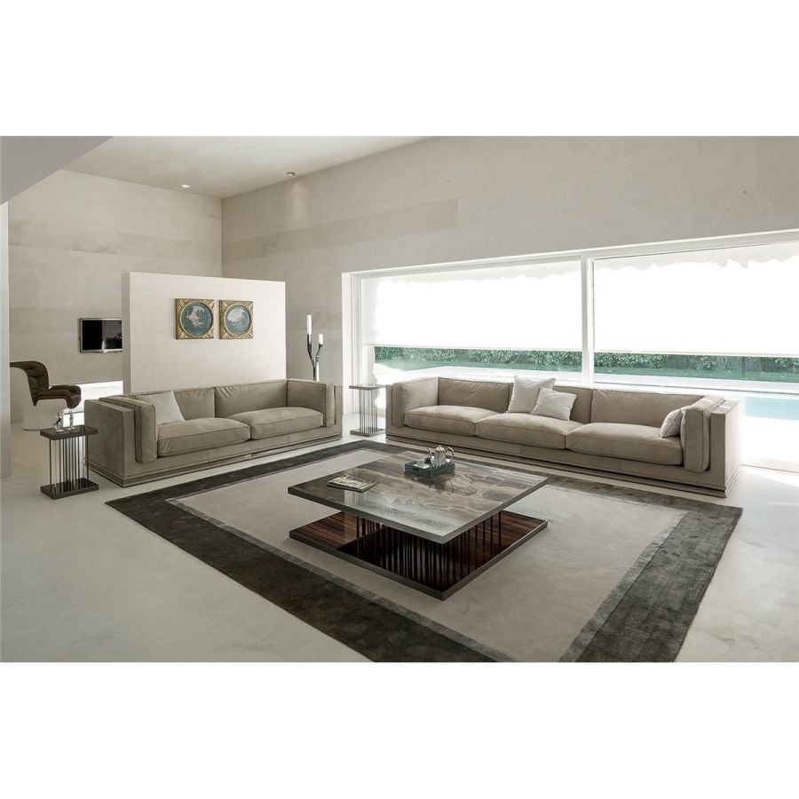 A seating system characterised by a classical-modern spirit that develops through the combination of generous volumes that also define marked horizontal lines. Mason is available in a double version, that comes with or without the metal perimeter frame at the base.