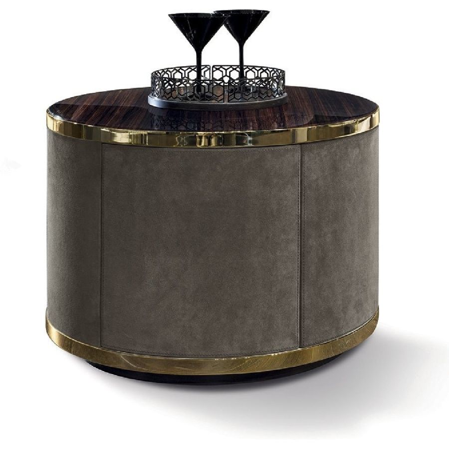 Courbet units come in a variety of configurations that fulfil different functions. These pieces present essential, modern aesthetics achieved with a combination of fine materials. The round terminal unit is quite characteristic with its practical bar tray.