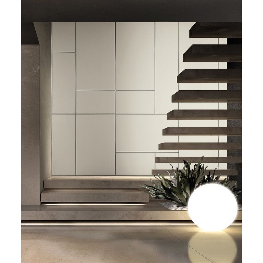 Land is a system made up of sliding modules, swing doors and boiserie that are arranged in space, combining taste and exclusive design. A domestic architecture outlined by lines that cross the surfaces creating a seemingly irregular grid. Meticulous research and countless compositional options allow for a fully custom-made design. Original coverings such as cork paper, wood and glass make each project unique.