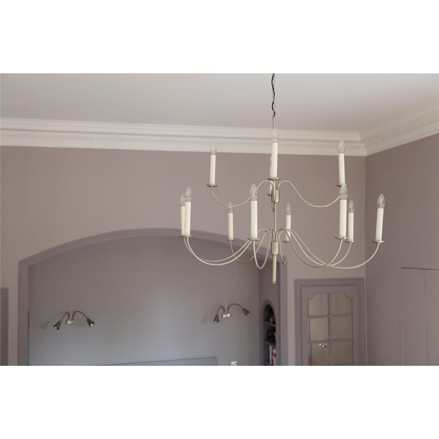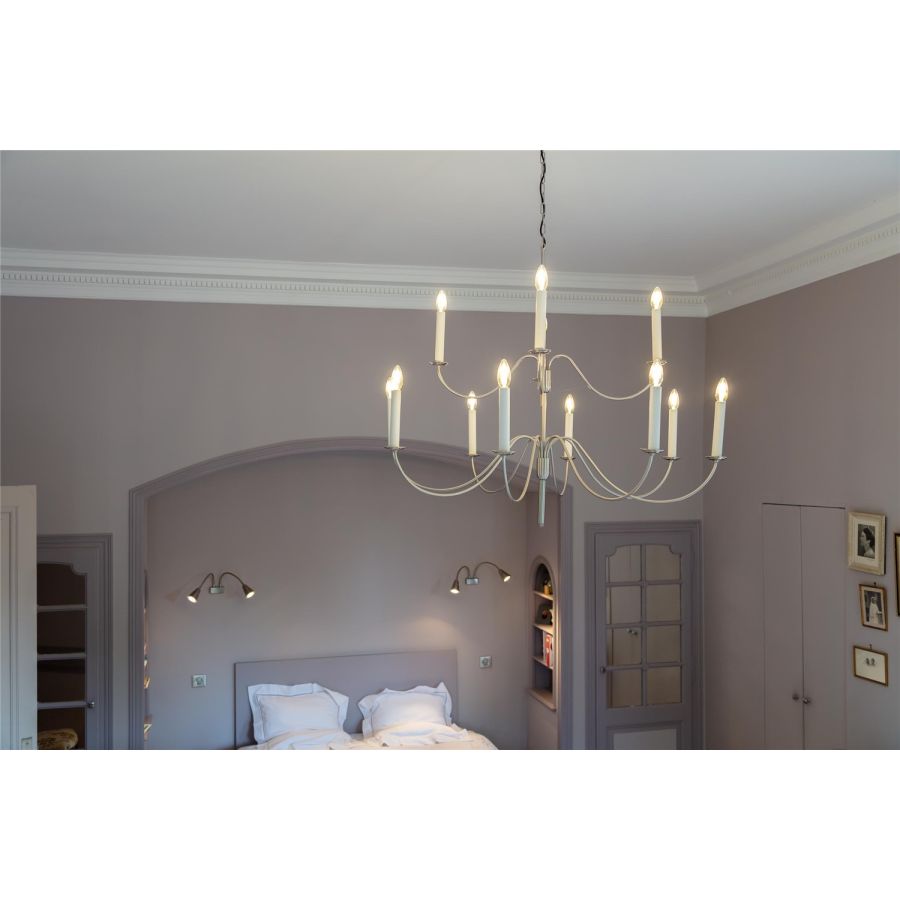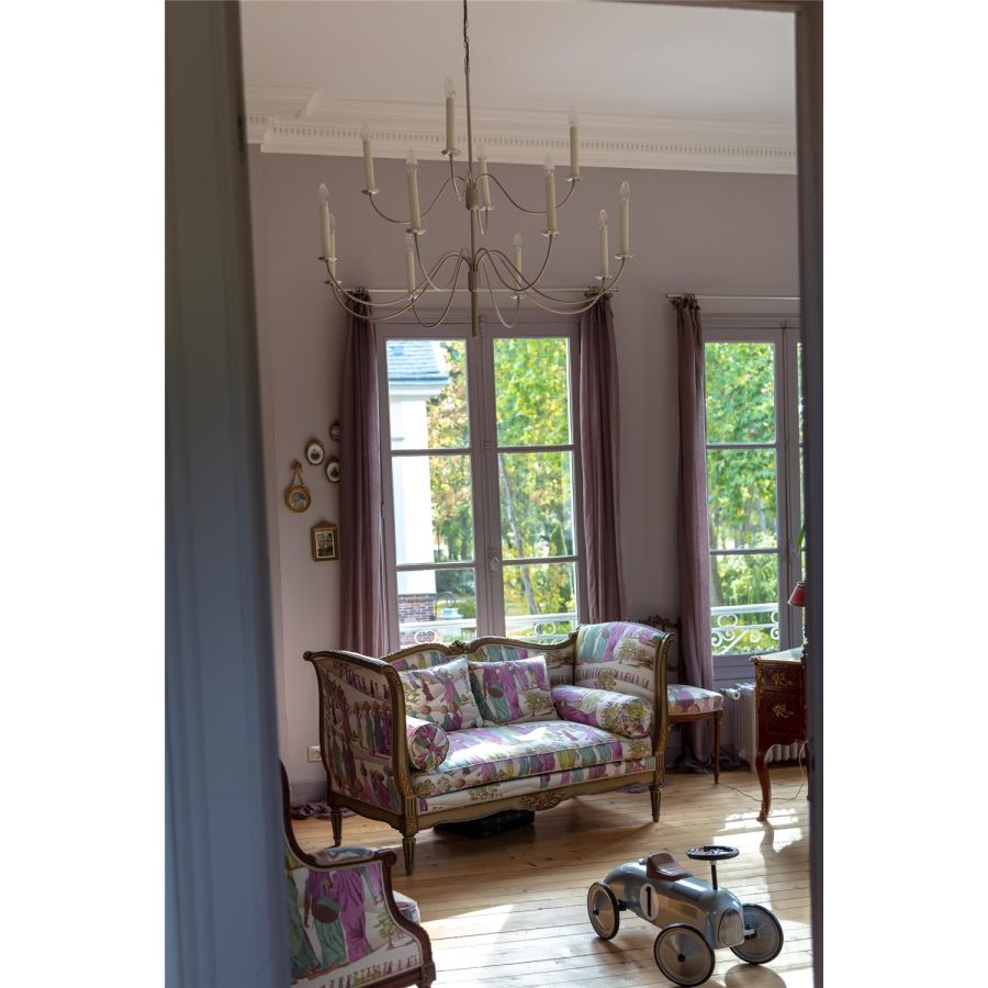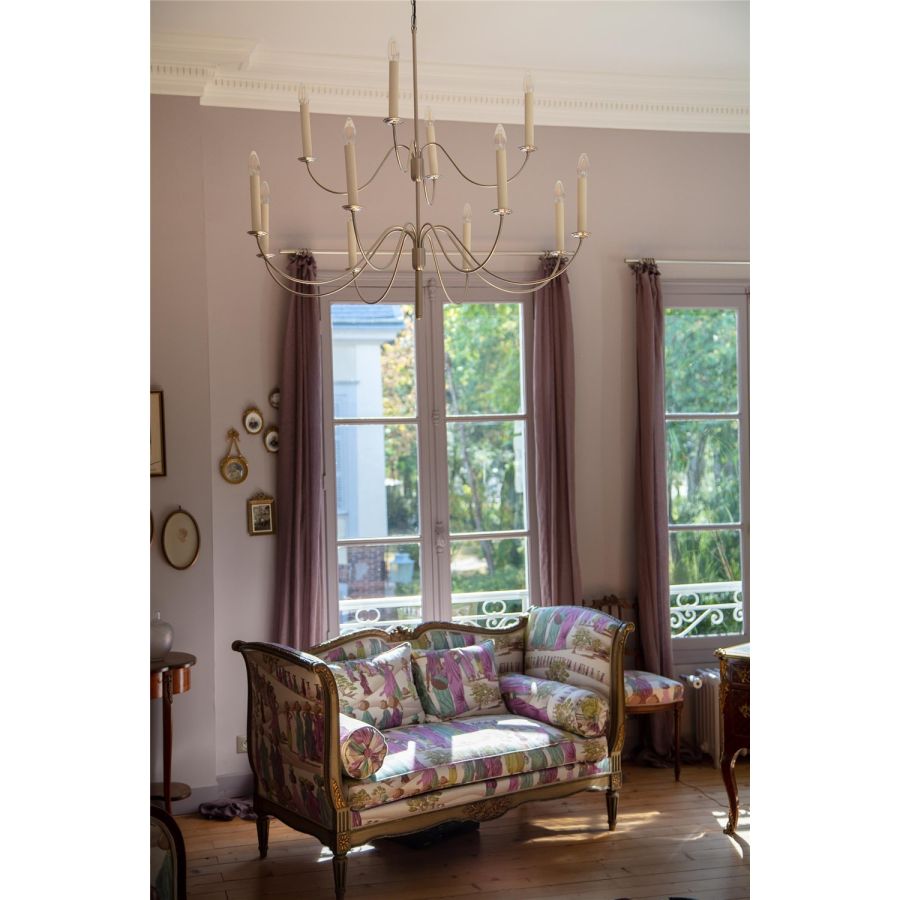 The Belle-Ile collection is available as a chandelier and wall sconce. Certainly one of the largest in our catalogue, the Belle-Ile chandelier plays on the subtlety of lines with its 12 lights as if suspended. Sober and elegant, it is possible to use it in all types of interiors if the space is there and lets it breathe! To be paired with the 2-light wall sconce and its two pivoting arms that will fit into the smallest spaces. This chandelier is delivered with chain and canopy.
