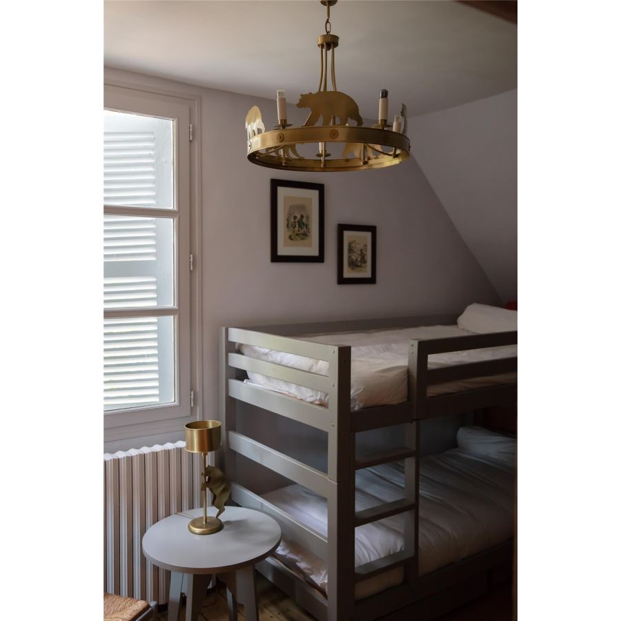 The Ours collection is signed mountain! Chandelier or wall sconce version, it will come to warm the interiors of snowy spaces. Choosing a brushed brass finish could give it a pep boost, almost contemporary! This chandelier is delivered with chain and canopy.