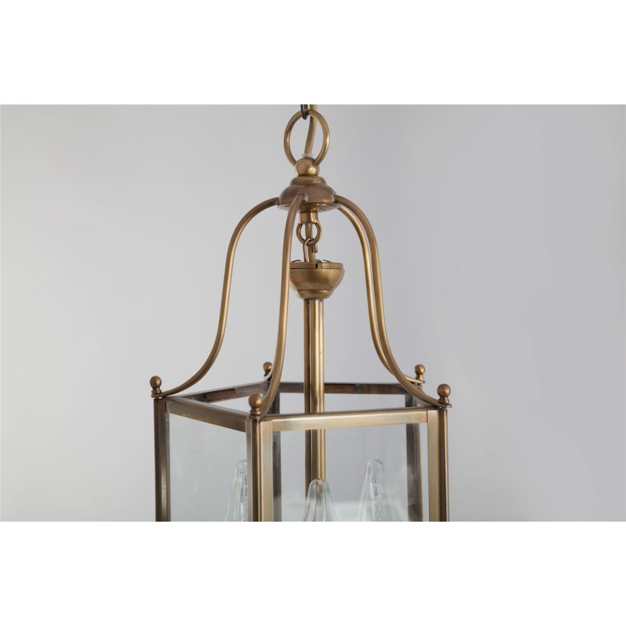 Inspired by 19th century lanterns but with a very simple design, the Directoire Collection includes interior hanging lanterns and matching wall lights. A fluid design and sophisticated brass balls subtly encase the body of the lanterns in this collection. Depending on the size, the swing arm supports three to six lights. The lamps are ideal for entrances, lobbies, galleries, and hallways. Lantern delivered with chain and ceiling cup.
