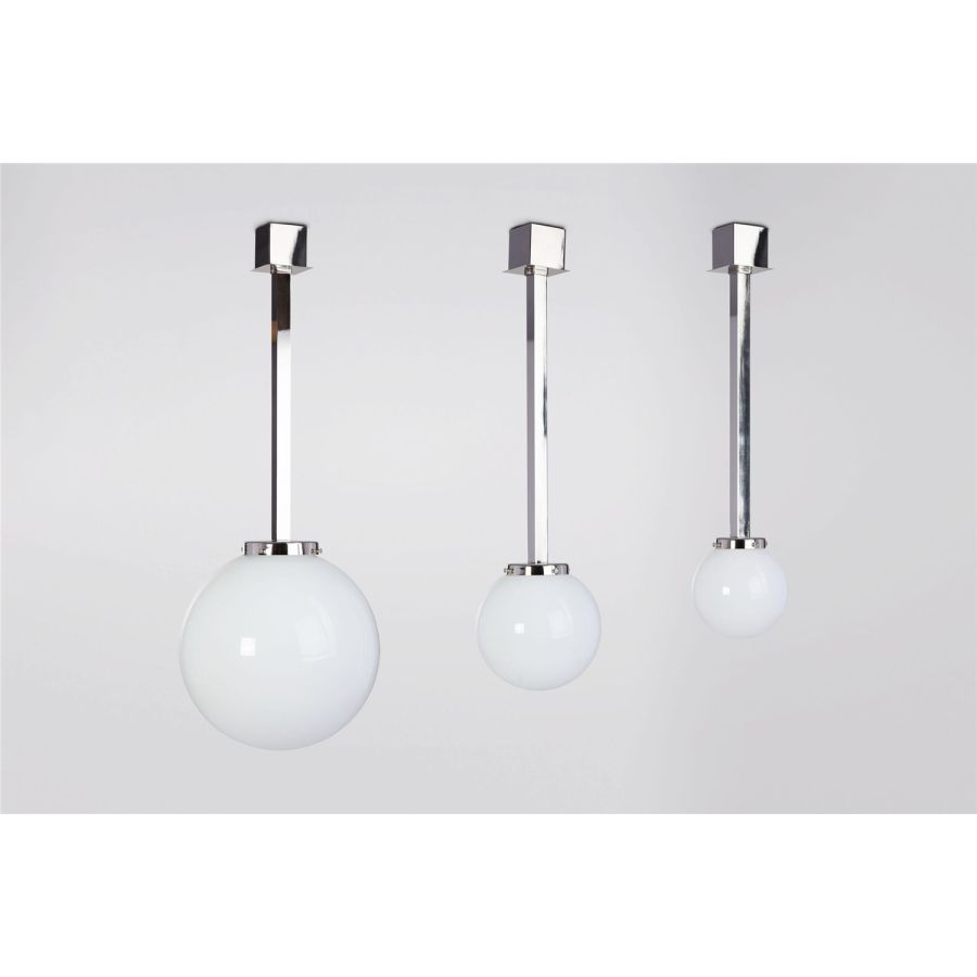 A little 1940s air for the Ombre de Lune collection which plays the game of contrasts by associating the straightness of the supports and the roundness of the opaline glassware. Happy synthesis between strength and softness, depending on the chosen patina, Ombre de Lune will move from the bathroom to the bedroom, to the corridor, even to the living room in its XXL version!