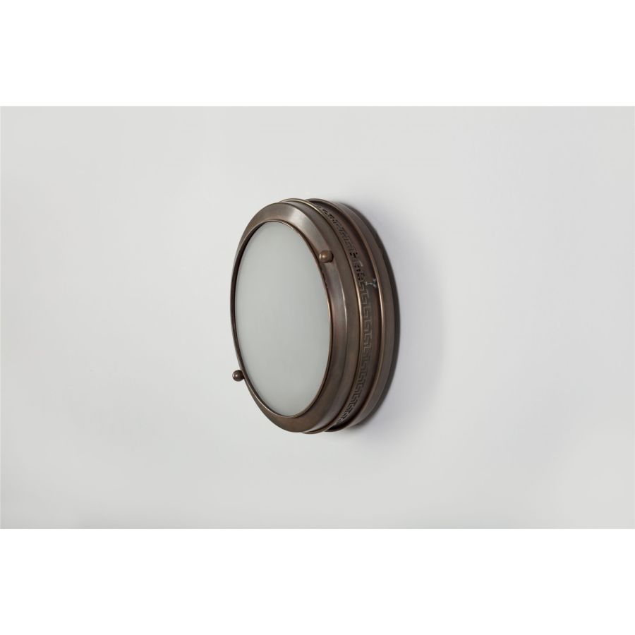 The porthole lights of the Grecque Collection can be installed on either walls or ceilings, specifically when the width or height of the space does not allow you to install a wall light or traditional pendant light. The frieze around the porthole light casts a subtle halo for a truly beautiful graphic effect.