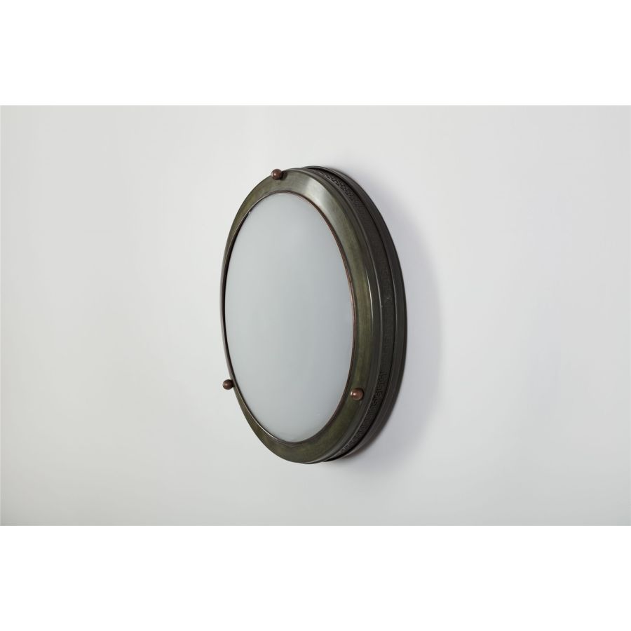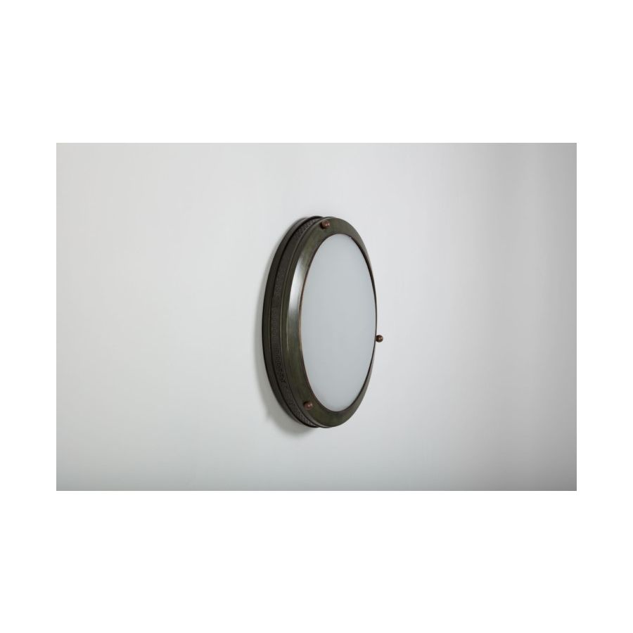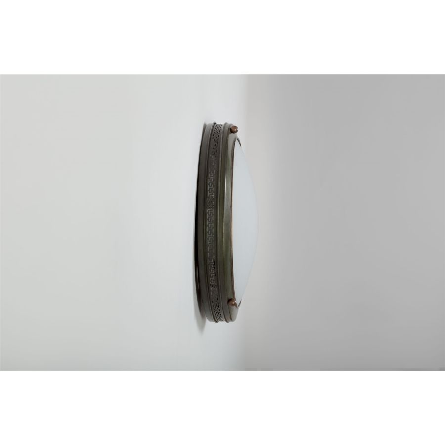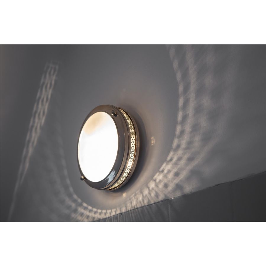The porthole lights of the Grecque Collection can be installed on either walls or ceilings, specifically when the width or height of the space does not allow you to install a wall light or traditional pendant light. The frieze around the porthole light casts a subtle halo for a truly beautiful graphic effect.