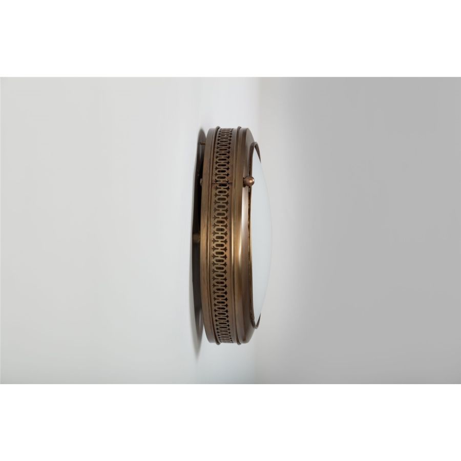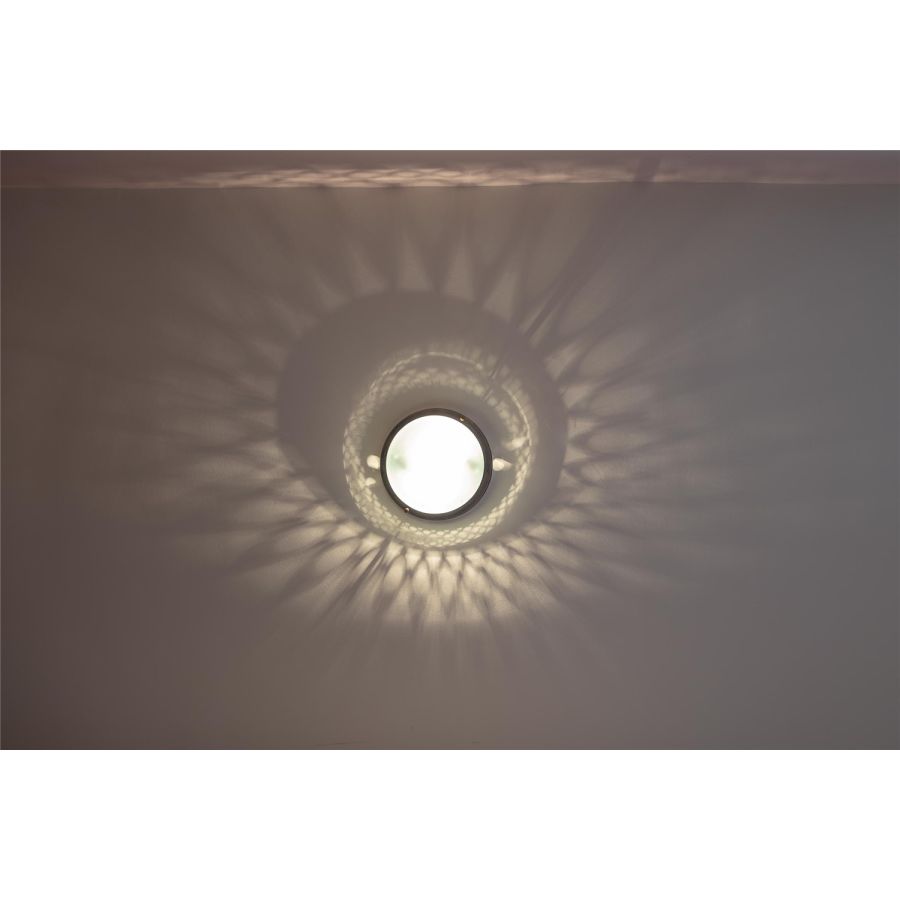 The porthole lights of the Maille Collection can be installed on either walls or ceilings, specifically when the width or height of the space does not allow you to install a wall light or traditional pendant light. The frieze around the porthole light casts a subtle halo for a truly beautiful graphic effect.