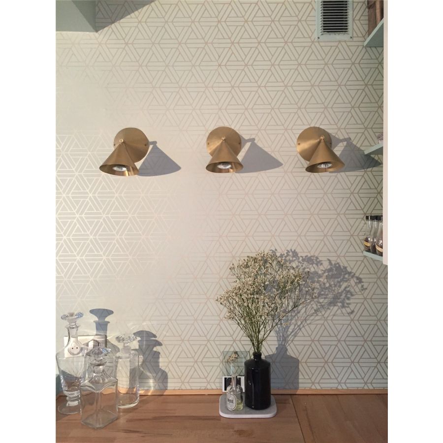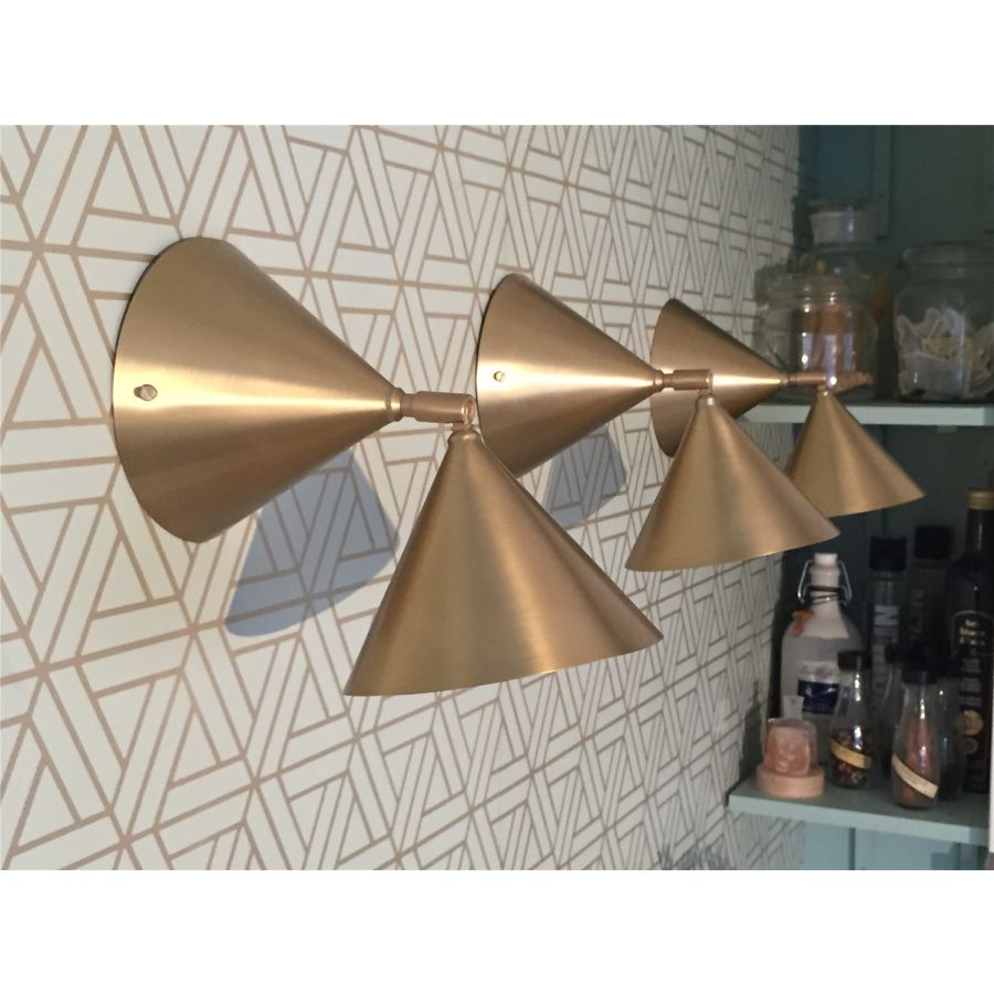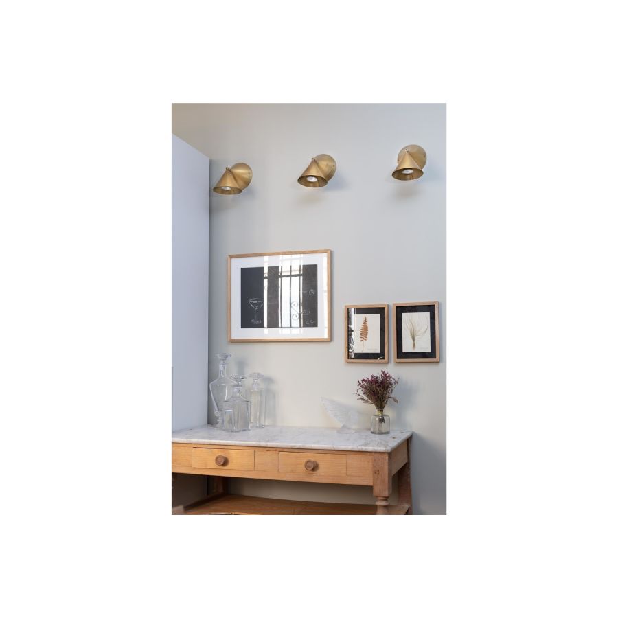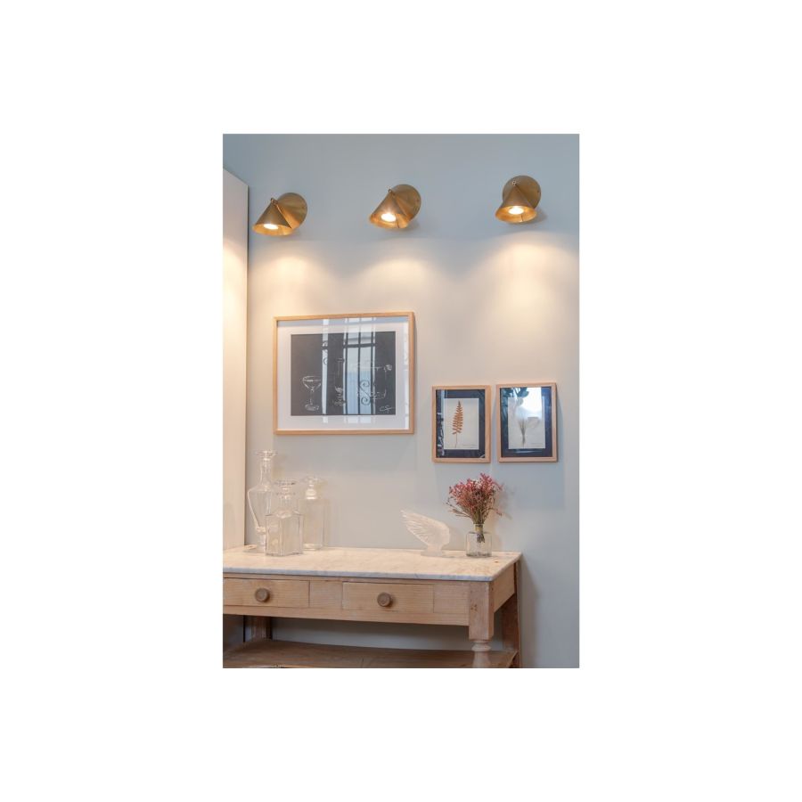 The double-cone pivotal Breguet wall light can be installed solo or in a series, creating a graphic effect and acting as a visual divider for a contemporary look.