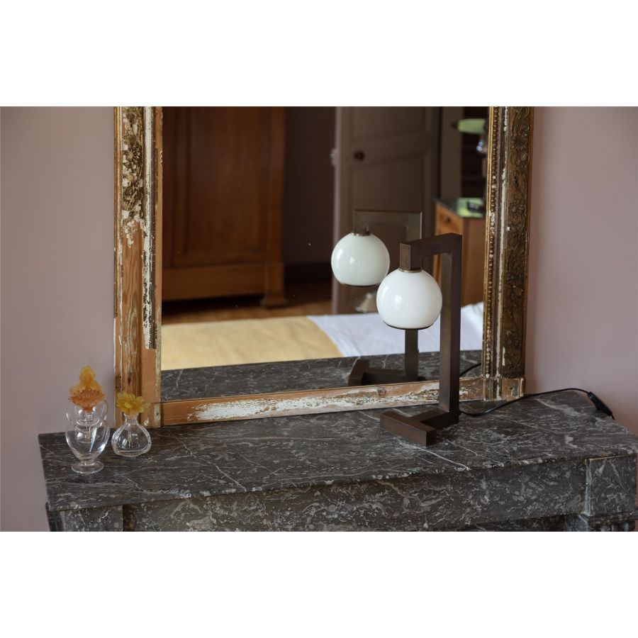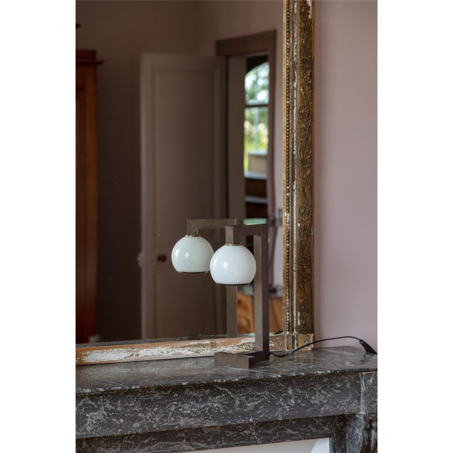 A little 1940s air for the Ombre de Lune collection which plays the game of contrasts by combining the rectitude of the supports and the roundness of the opaline glassware. A happy synthesis between strength and softness, depending on the chosen patina, Ombre de Lune will move from the bathroom to the bedroom, to the hallway or even to the living room in its XXL version!