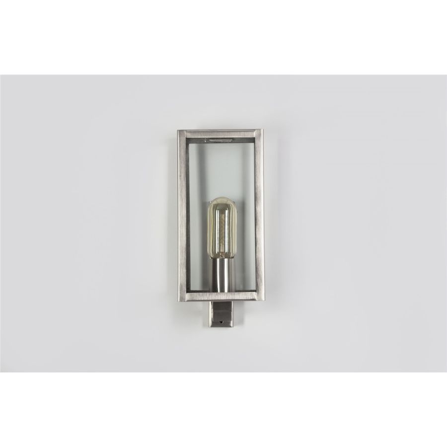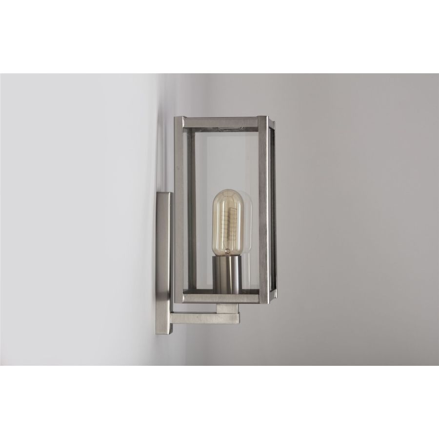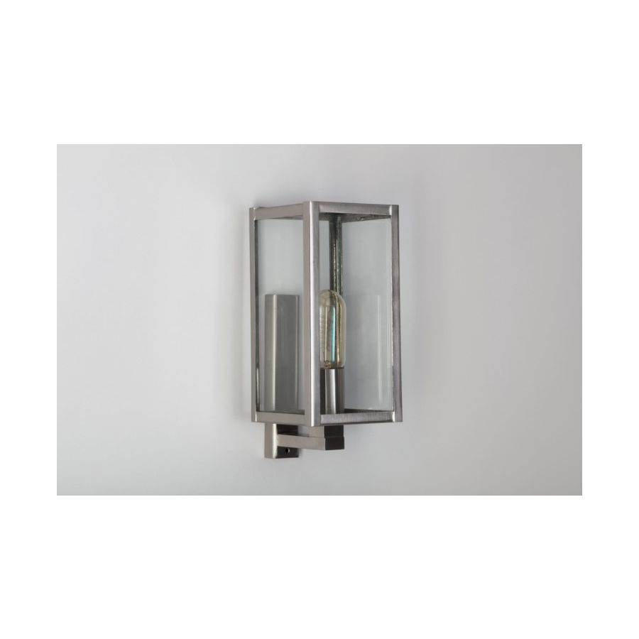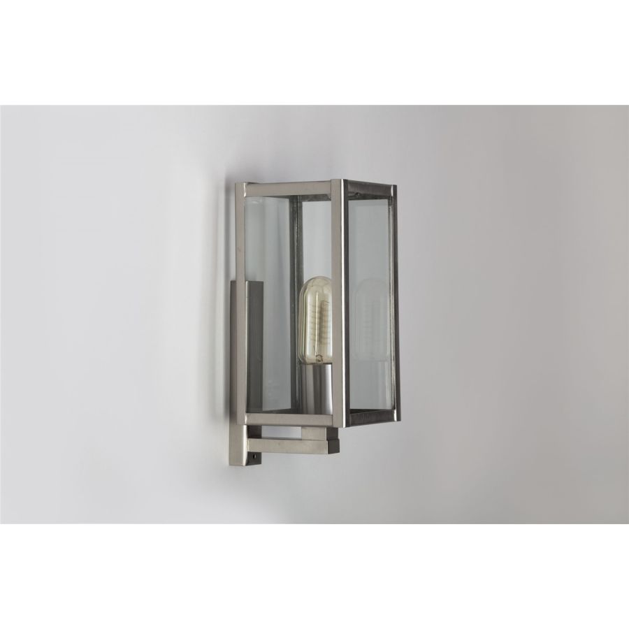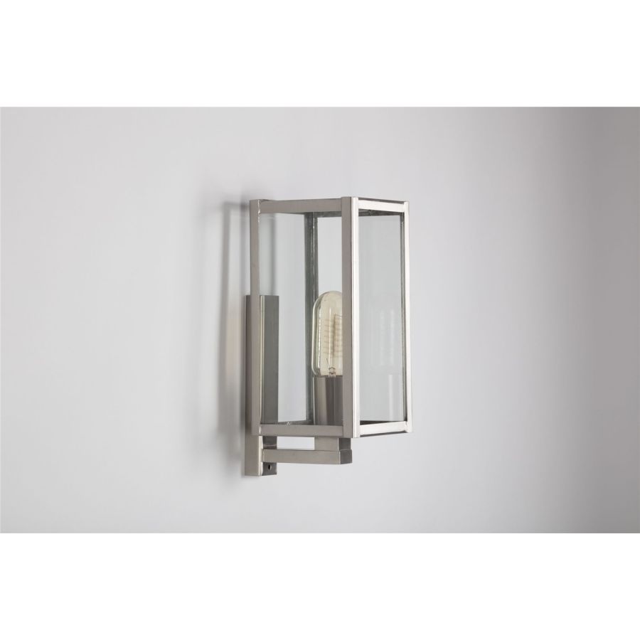 With its pyramid top and full glass sides, the Part Dieu wall light works beautifully outdoors; indoors it pairs perfectly with the Antana or Valentine chandeliers. Its contemporary style puts the light bulb front and centre; as such we recommend picking a similarly contemporary style bulb!