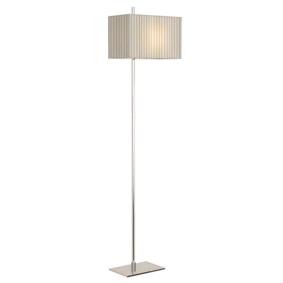 Perfect piece of furniture to illuminate bedrooms and common areas, this floor lamp is composed of a linear structure in brass with a polished nickel finish and a rectangular lampshade in ivory pleated fabric. Available in various colors.