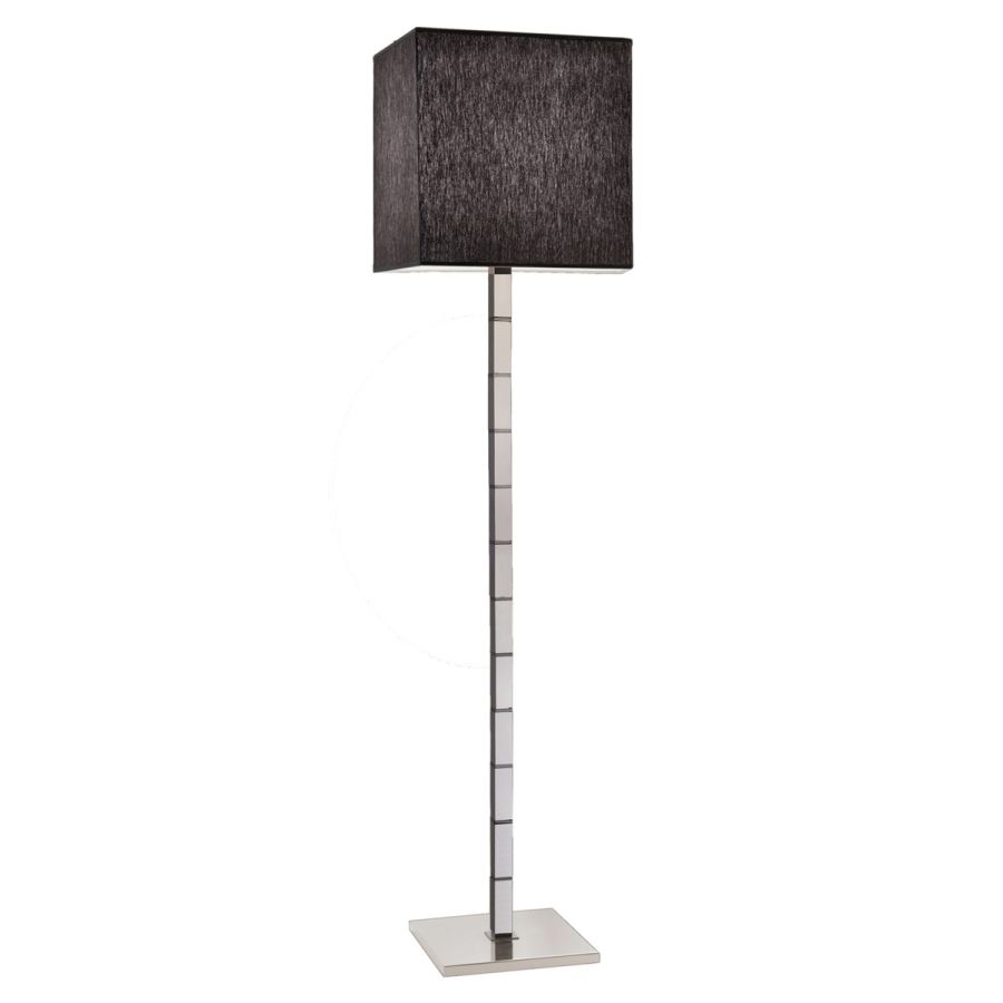 Born from the idea of creating an environment with a strong visual impact, this floor lamp is offered in a chrome finish, with a square-shaped lampshade in black fabric.