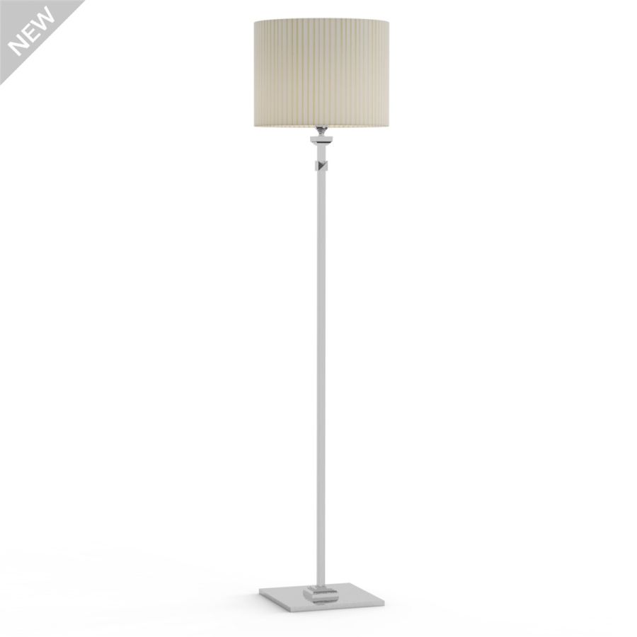 Equipped with a square base, the floor model in brass with a polished chrome finish has a cylindrical lampshade in ivory pleated fabric. Ideal for lighting bedrooms and living areas.