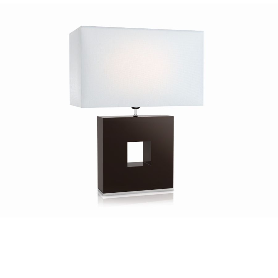 efined table lamp with a balanced and modern concept, square-shaped in lacquered wood in the color of your choice, with base and details in chrome-finish metal.