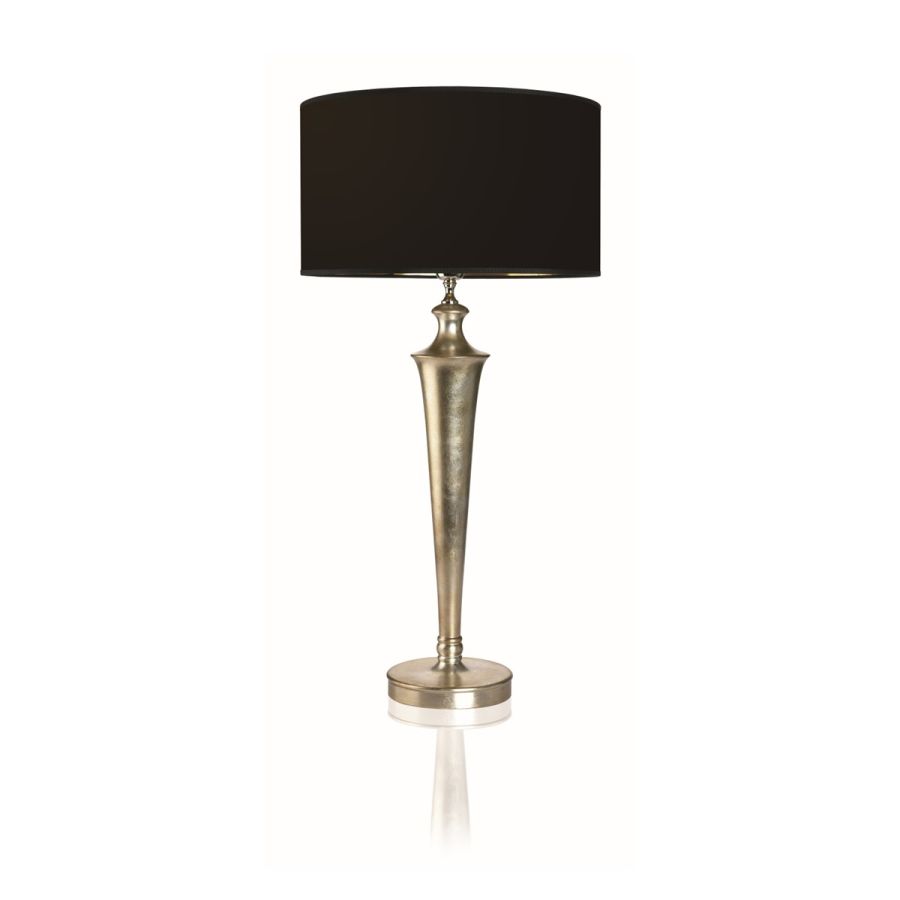 This luminous desk body of classic design, with wooden structure decorated with antiqued silver leaf, completed with cylindrical lampshade in black fabric, is perfect for lighting a bedroom, a dining room or a living room. Available in various colors.