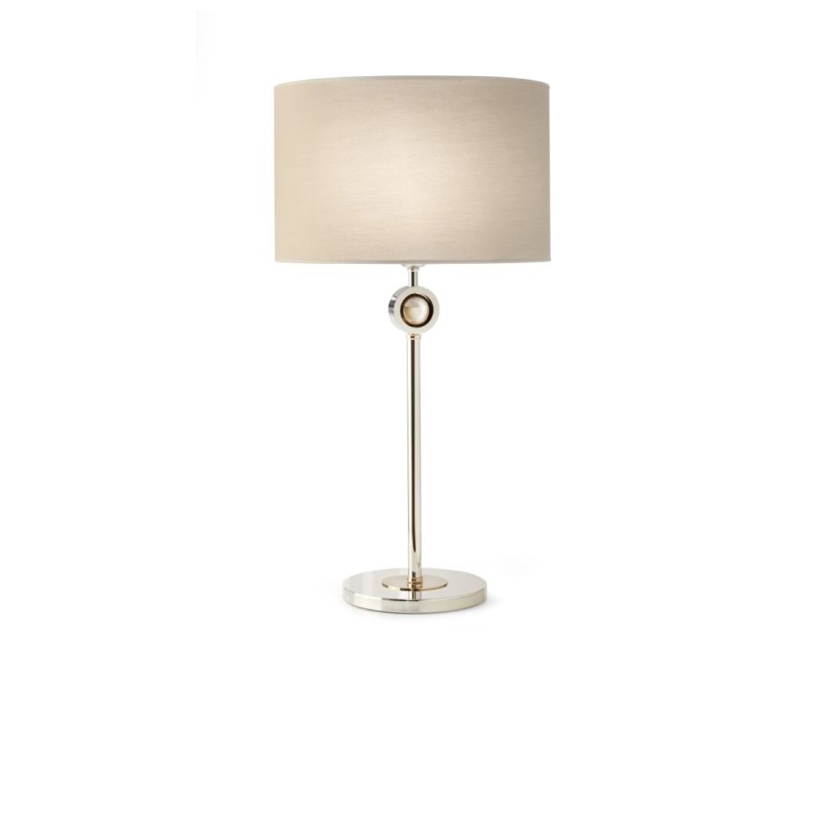The table lamp model has a polished nickel finish and details in the precious light gold.