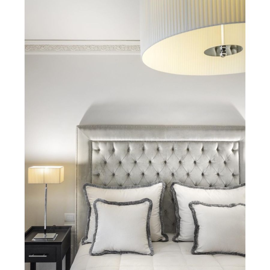 The Mercurio table lamp is an essential element for modern environments, thanks to its regular geometries it gives harmony and refinement in bedrooms and living areas.