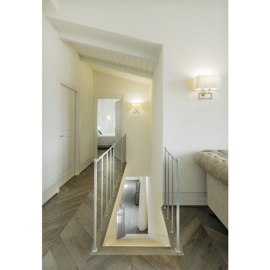 This lamp, which diffuses a soft and welcoming light from the wall, is a perfect emblem of the encounter between aesthetic sobriety and construction quality. Available in chrome, nickel and light gold finishes.