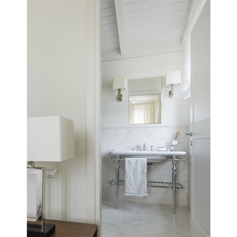 This wall model with square lampshade in black fabric generates a sense of completeness and balance, highlighting the interior design.