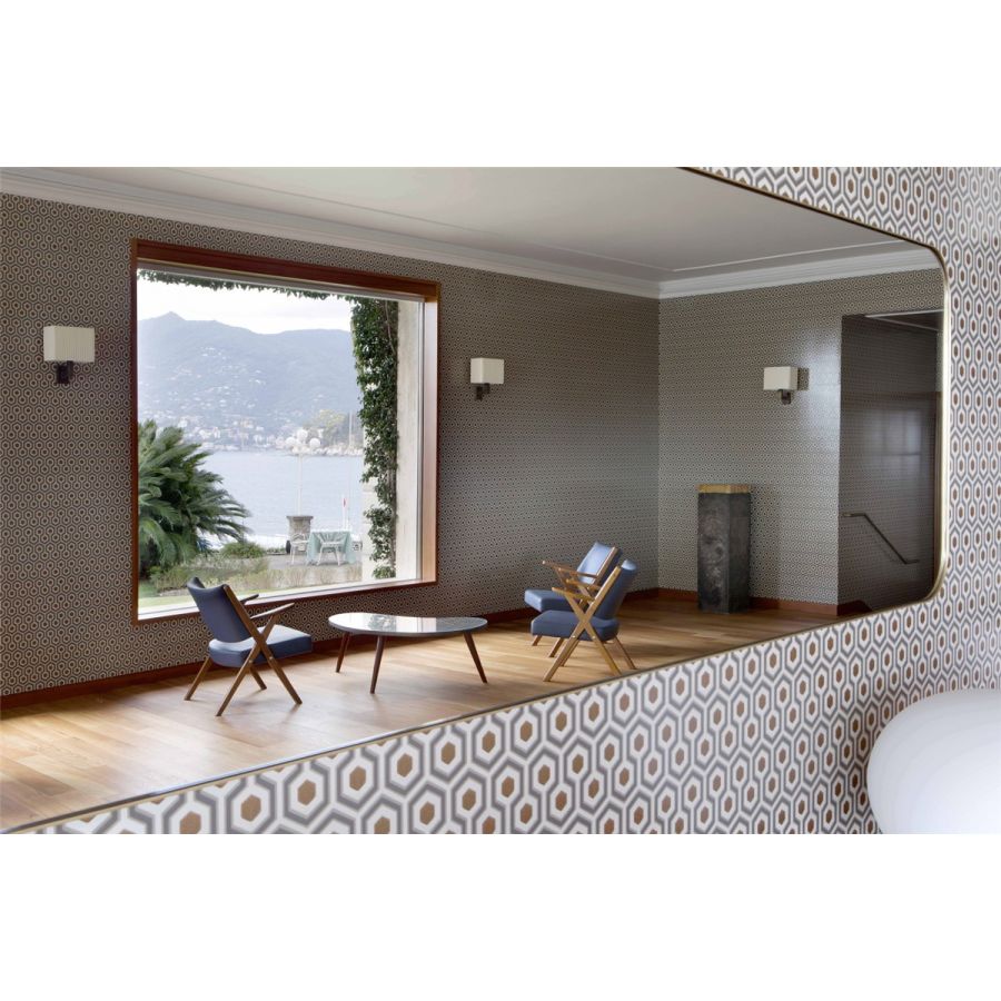 This wall model, excellent for the bed side, consists of a brass structure with a rectangular wall base in a chrome finish. Available in various fabrics and colors.