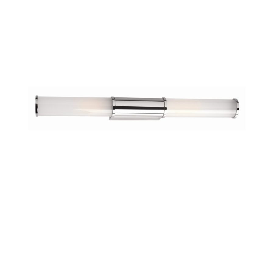 Two-light horizontal bathroom lamp with a tubular shape, with contemporary and modern features.