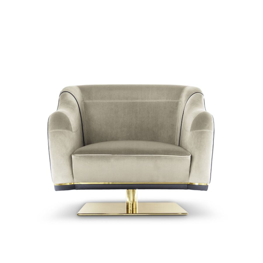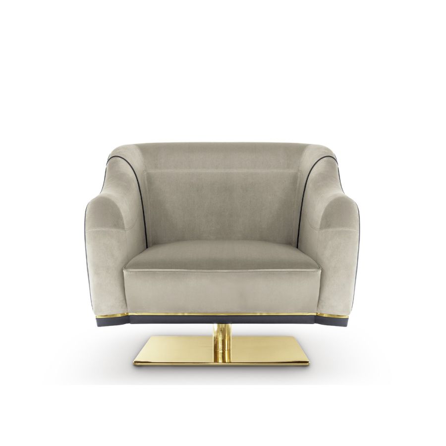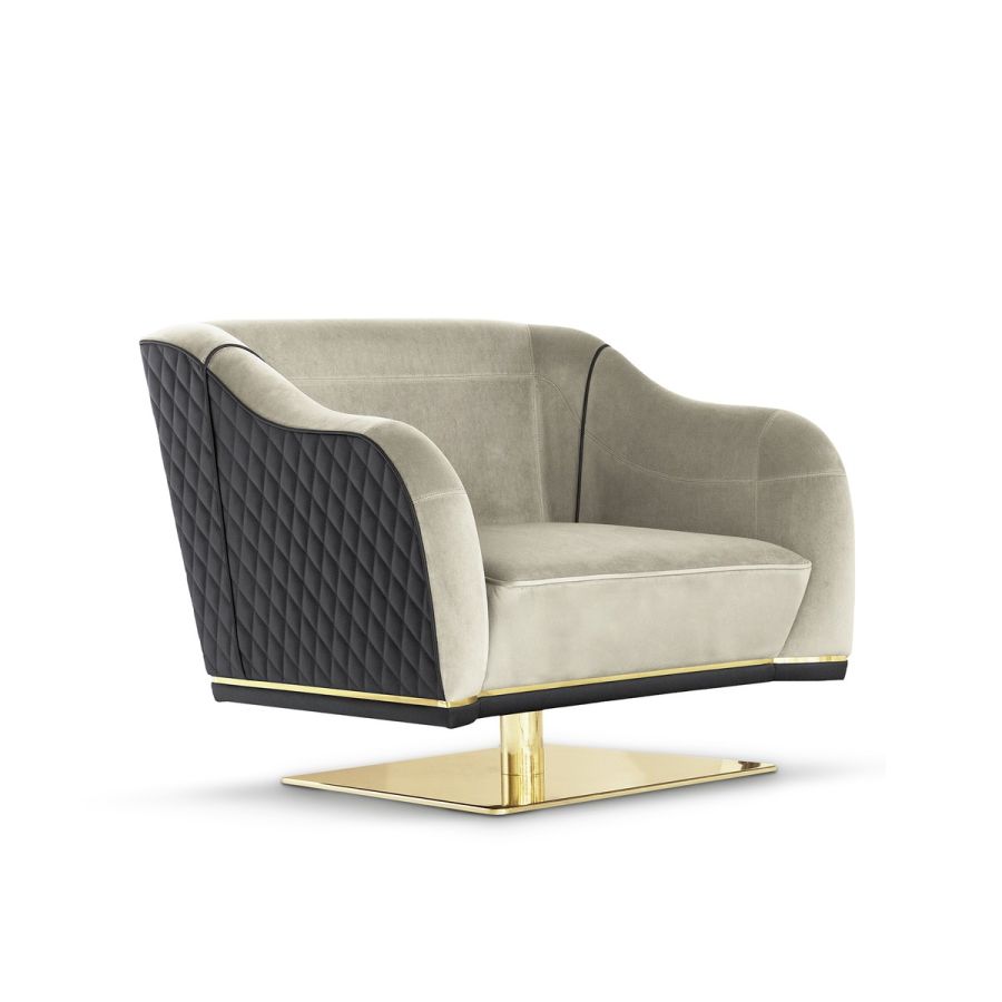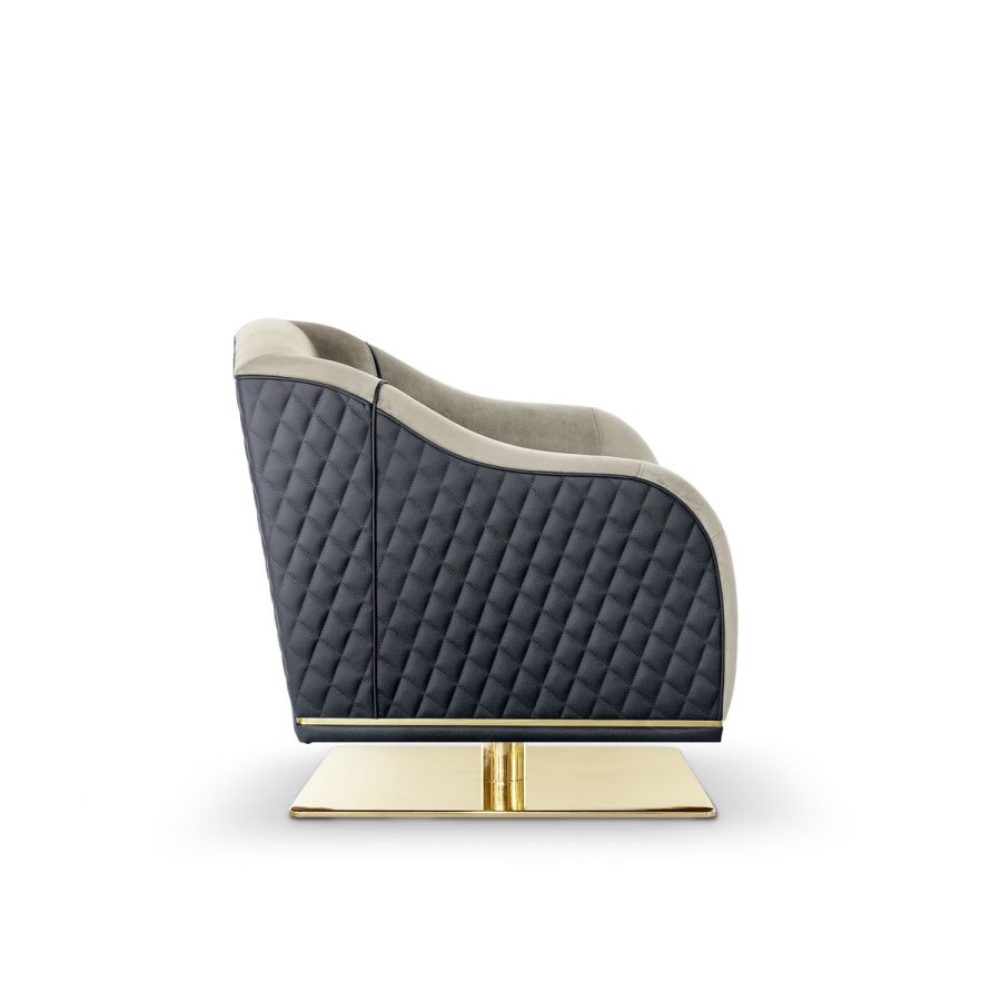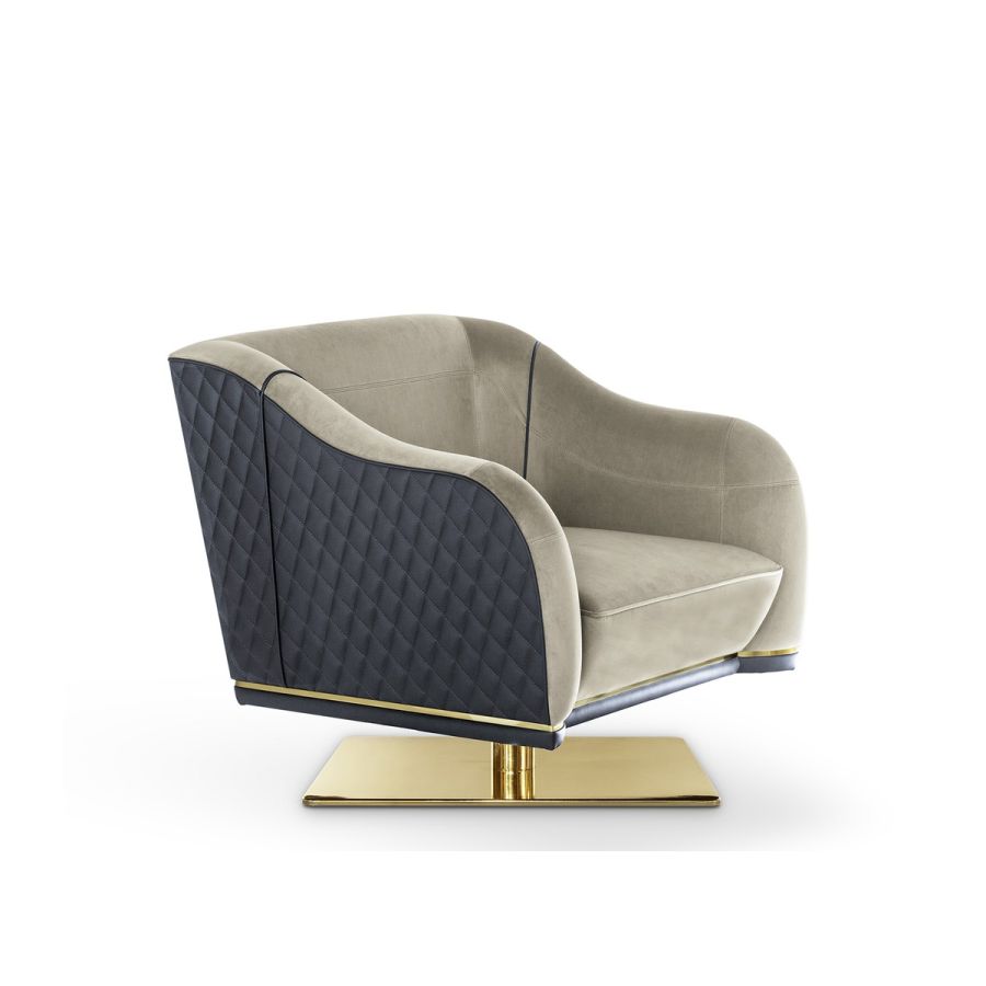 Inspired by the 1940s movie scene, the Saboteur Swivel Single Sofa is a lighter take on its collection's darker aesthetic. Made with high-end materials, such as leather and velvet, this luxurious swivel single sofa provides exceptional comfort and accessibility with its rotating feature, making it a versatile addition to any space. The sofa's impeccable design ensures it will adapt perfectly to different ambiances and styles, becoming a focal point in any room.