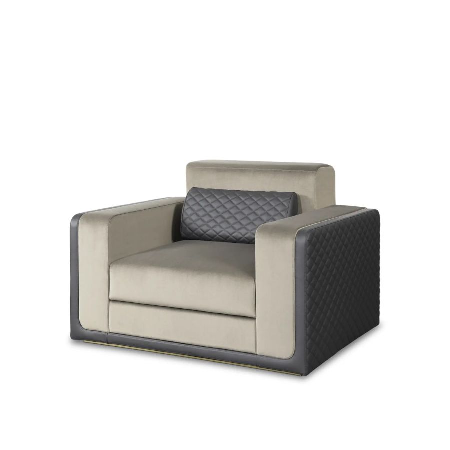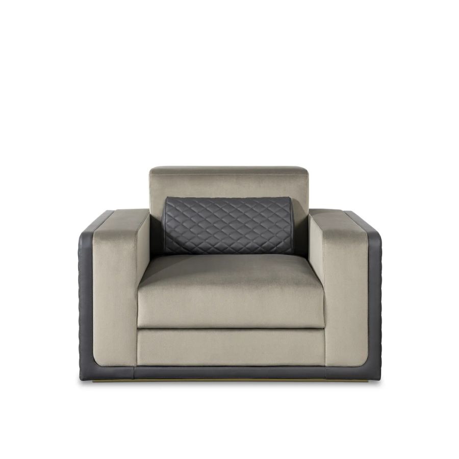 The Thomson Single Sofa was born from the finest materials, such as velvet, leather, brass, glass, and wood. It features a sophisticated design that is both timeless and elegant. With refreshing details that never go out of style, this luxury single sofa is reminiscent of the art deco era. A unique piece that will elevate any living room with its glamorous lines and impeccable craftsmanship.