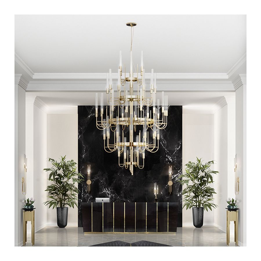 Combining the modern age and luxury, the Gala Chandelier is a revival experience from the palatial apogee. Made with brass and clear crystal glass, this imposing item is perfect for any entrance or ball room.