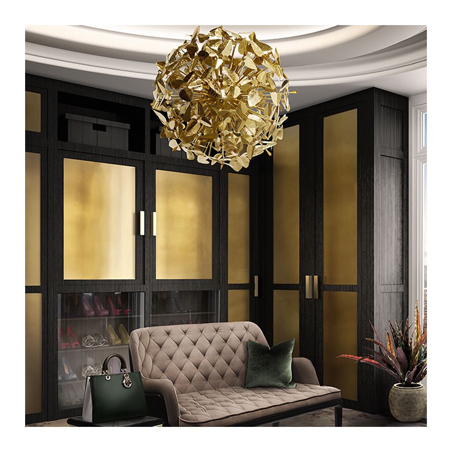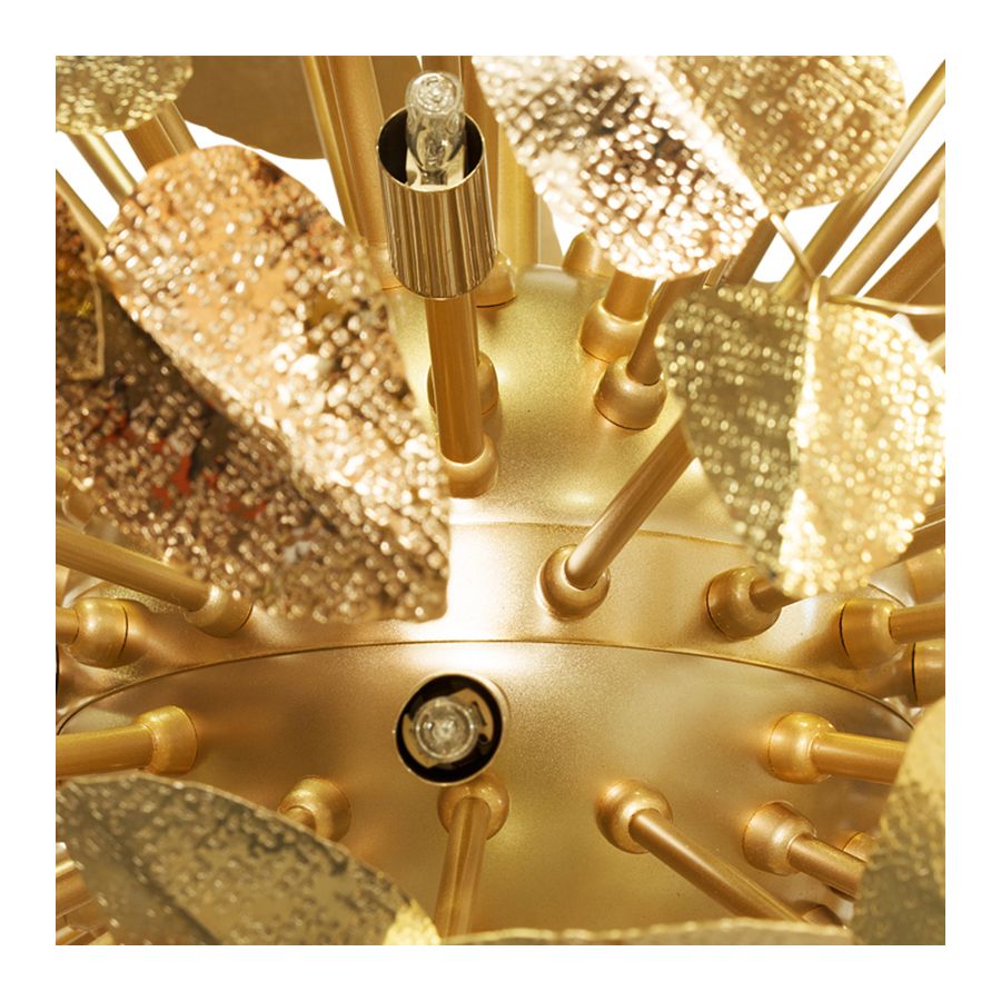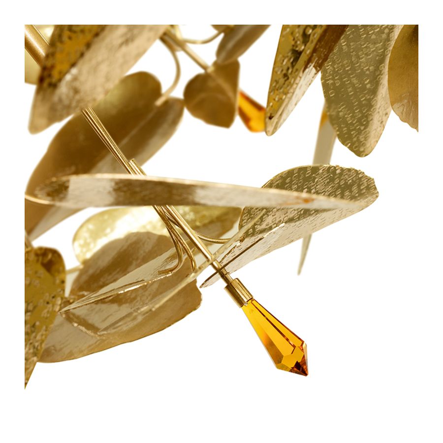 Like a savage beauty, this masterpiece brings the powerful evocation of the sublime. It’s perfect to use as a single item or in harmony with more than one element in the same area. Its lush presentation gained inspiration from Alexander McQueen creations and in each leaf is forging its identity in brass and gold plated finishes, giving a set of rhythmic, luminous branches that end up with the touch of beautiful Swarovski crystals.