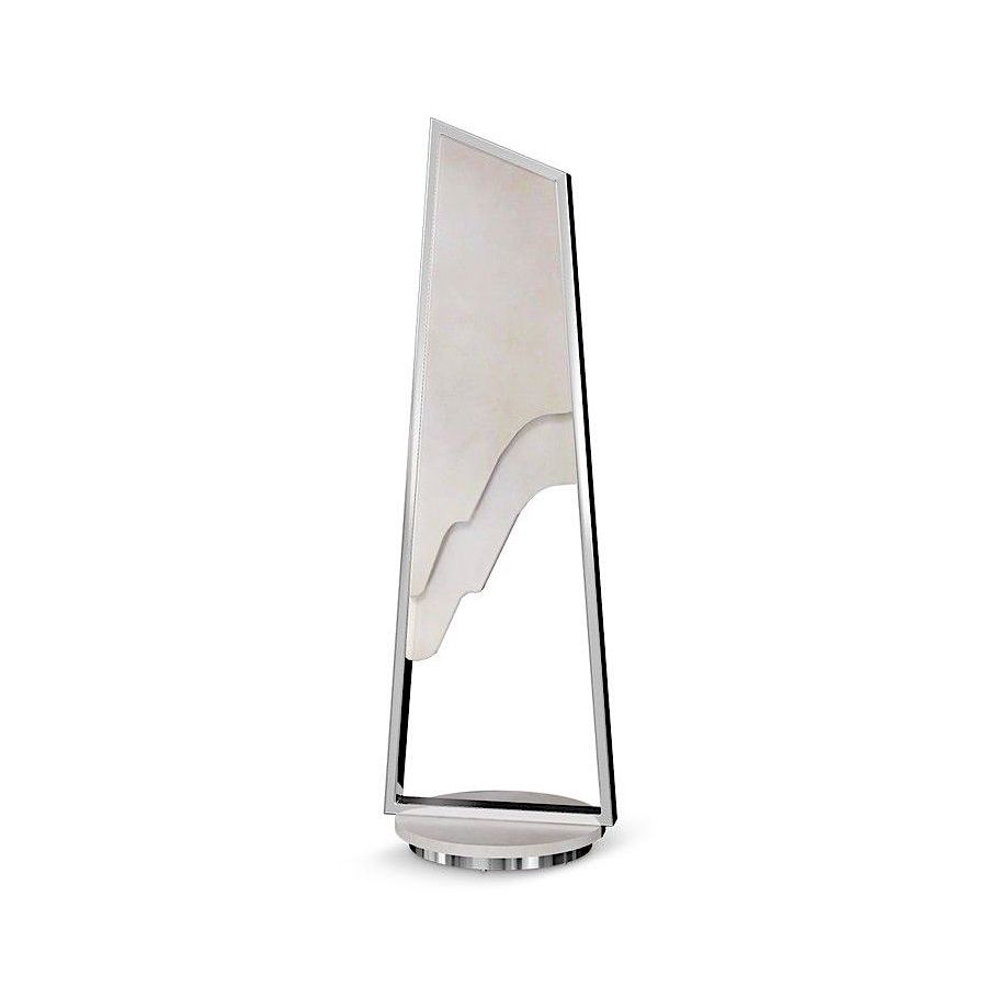 The Magna II Outdoor Floor Lamp pays homage to raw materials, semi-precious stones, and natural textures. The glossy metallic frame is in polished stainless steel, and the lighting proportion is made of alabaster, diffusing light softly and in a translucent way. Magna’s horizon-like inspiration makes it a superb complement to outdoors.