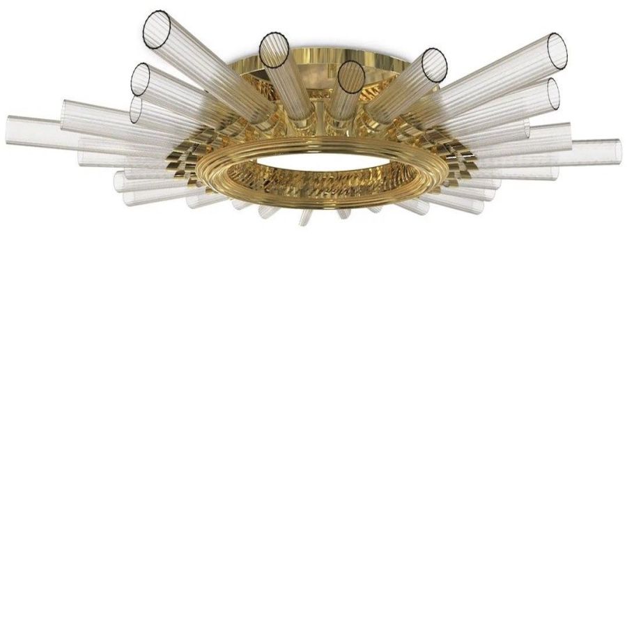 The Majestic collection embodies a romantic and daring form. This modern luxury plafond is made of gold-plated brass and crystal glass, making it a piece full of personality for stylish projects. A modern design with majestic inspiration.