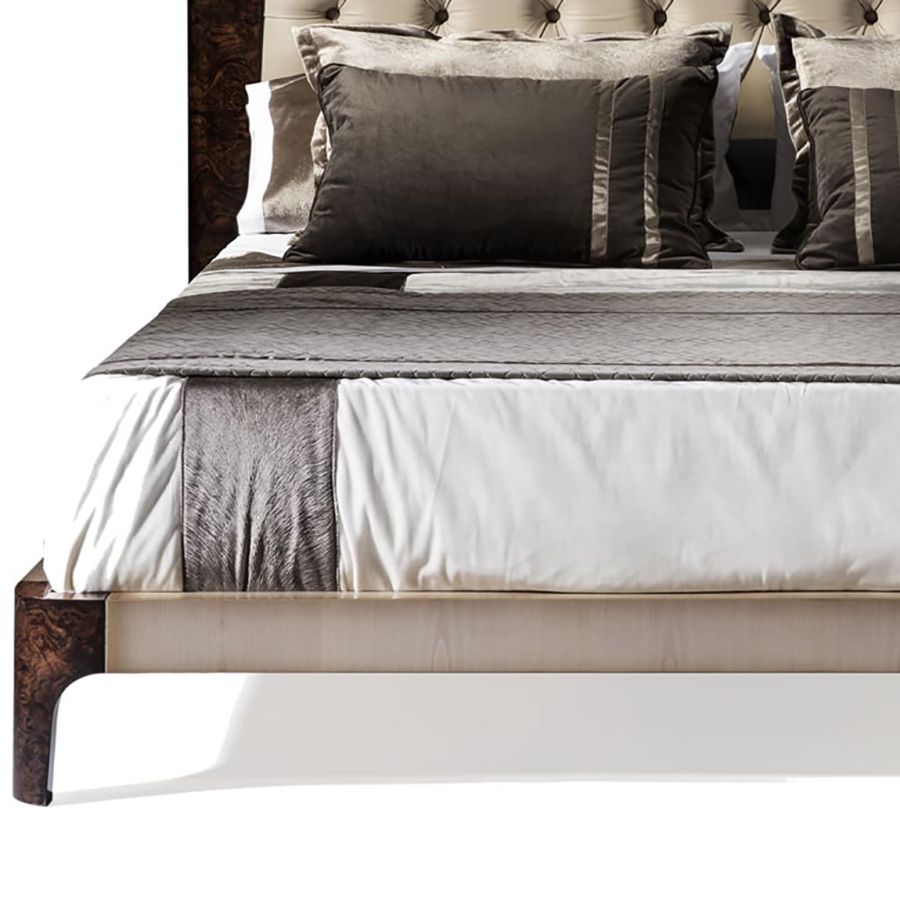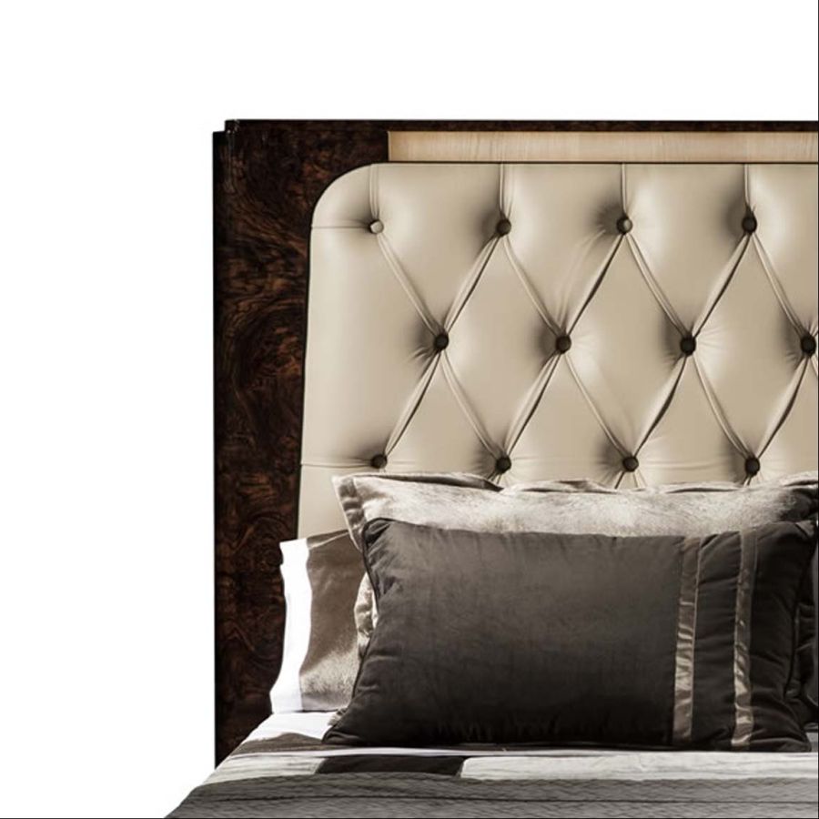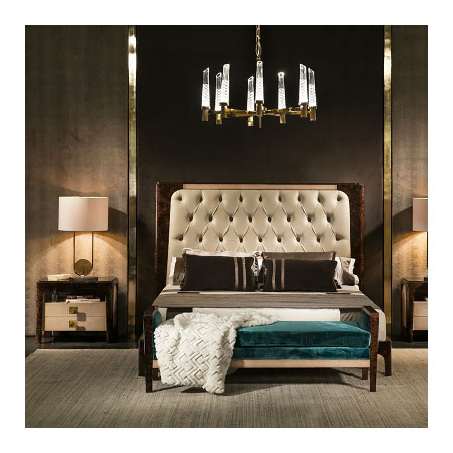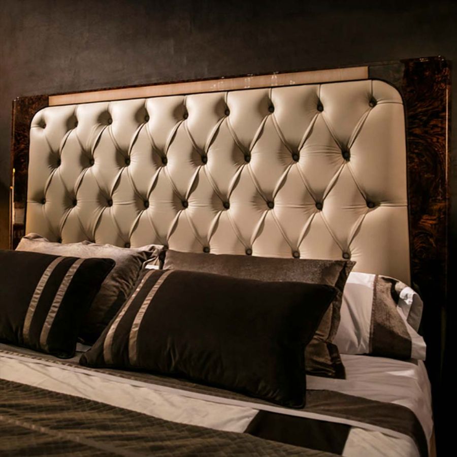 Säng från Ascot-kollektionen är tillverkad av trä med högblank och satinfinish, med detaljer i läderklädsel.
