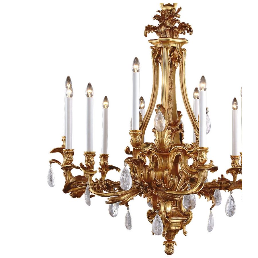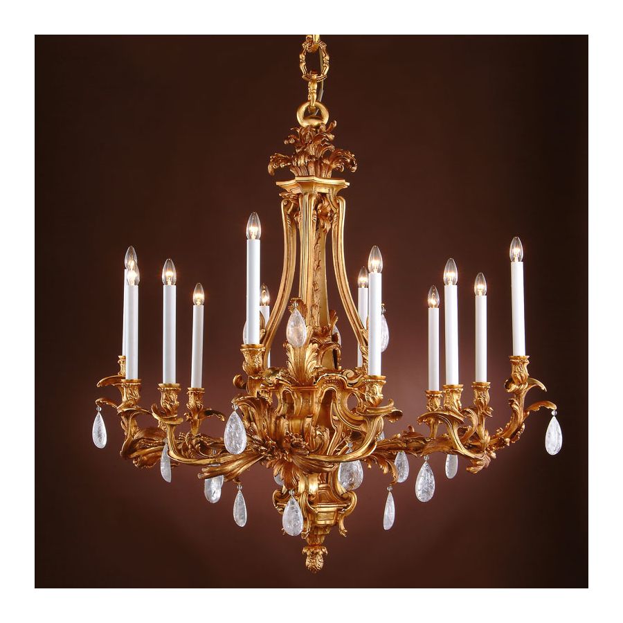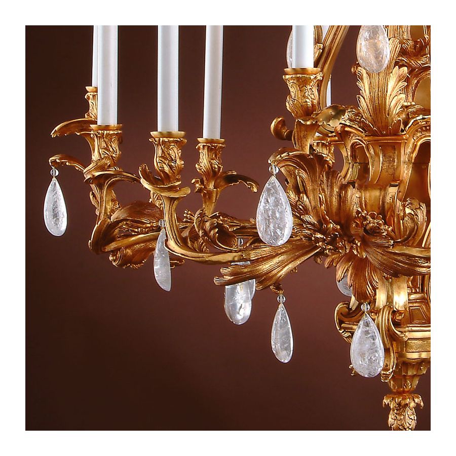 Rokoko-ljuskrona med förtjusande blommigt ormolu i ständig rörelse som det främsta dekorativa motivet, i kombination med rocaille-ornamentik, först skapad under regencyperioden. Gjutet i mässing och enligt tekniken “förlorad vaxgjutning” är denna modell ett verkligt mästerverk.