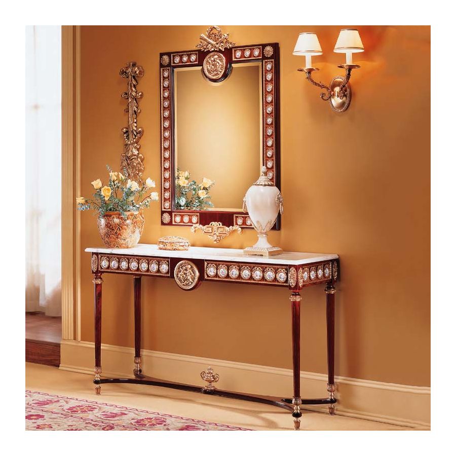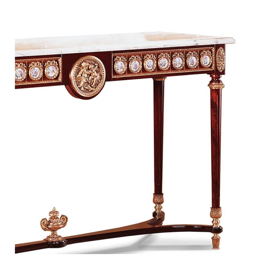 Konsolbordet är gjort av mahognyträ och har franska gulddetaljer.