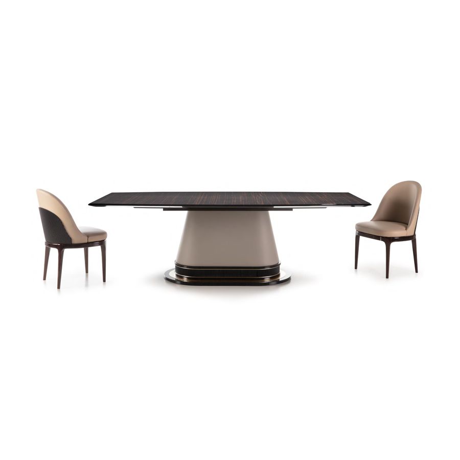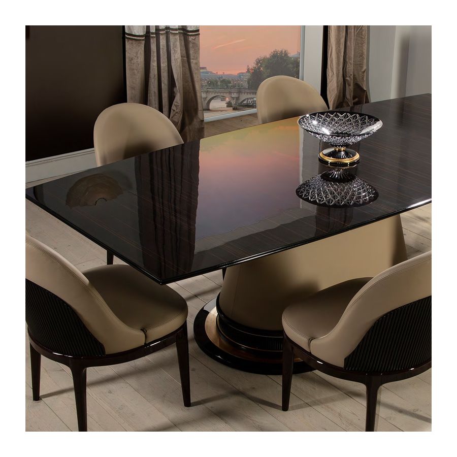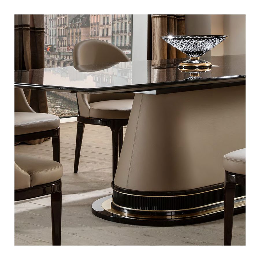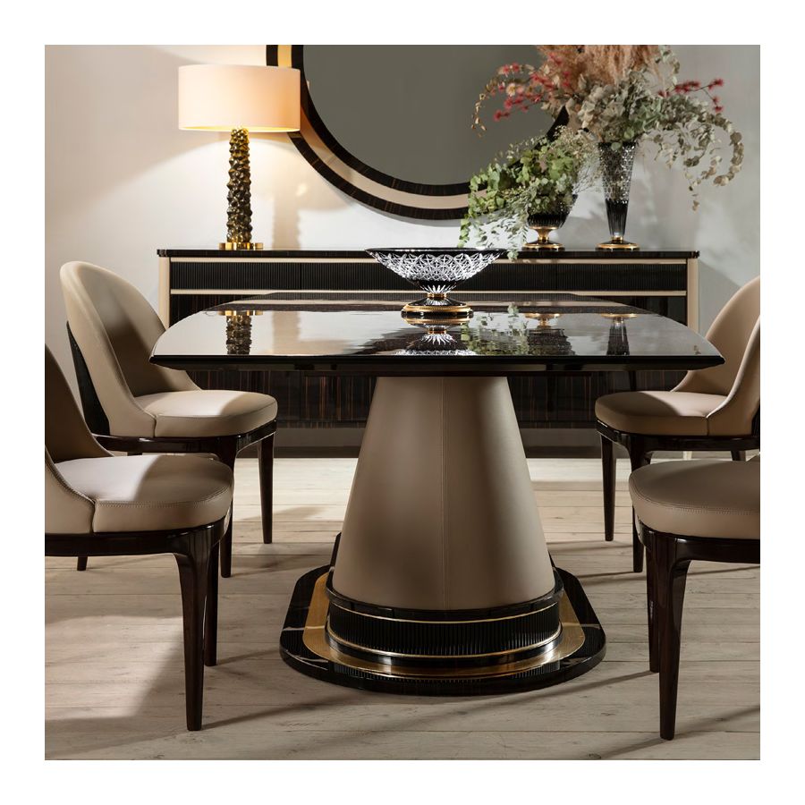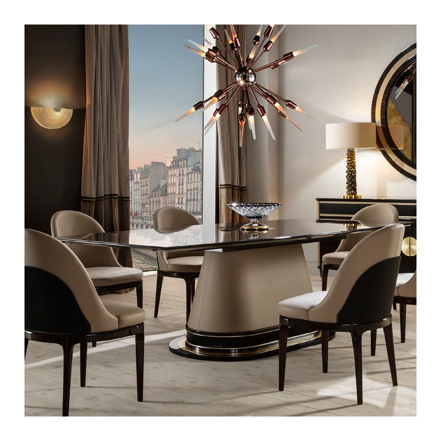 Matbord från Monaco-kollektionen är gjort av trä och metall och har läderdetaljer.
