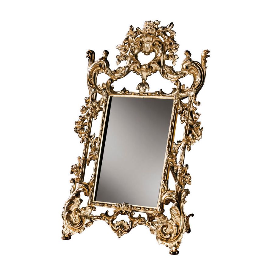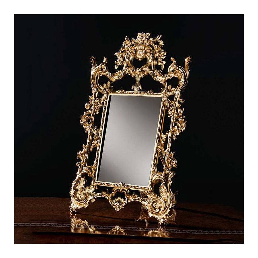 Lyxspegel för bordet är tillverkad av metall i två utföranden.