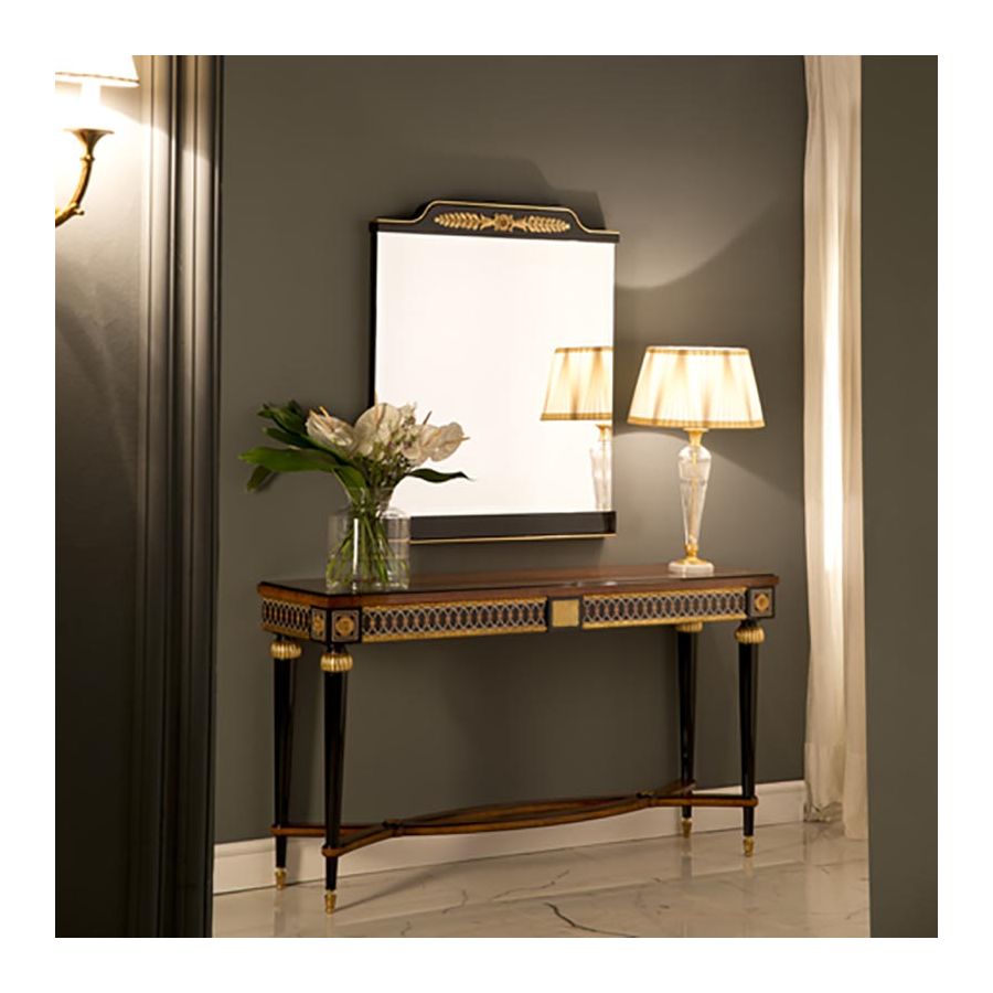 Väggspegeln är tillverkad av Nantes-trä och franskt guldmetall.