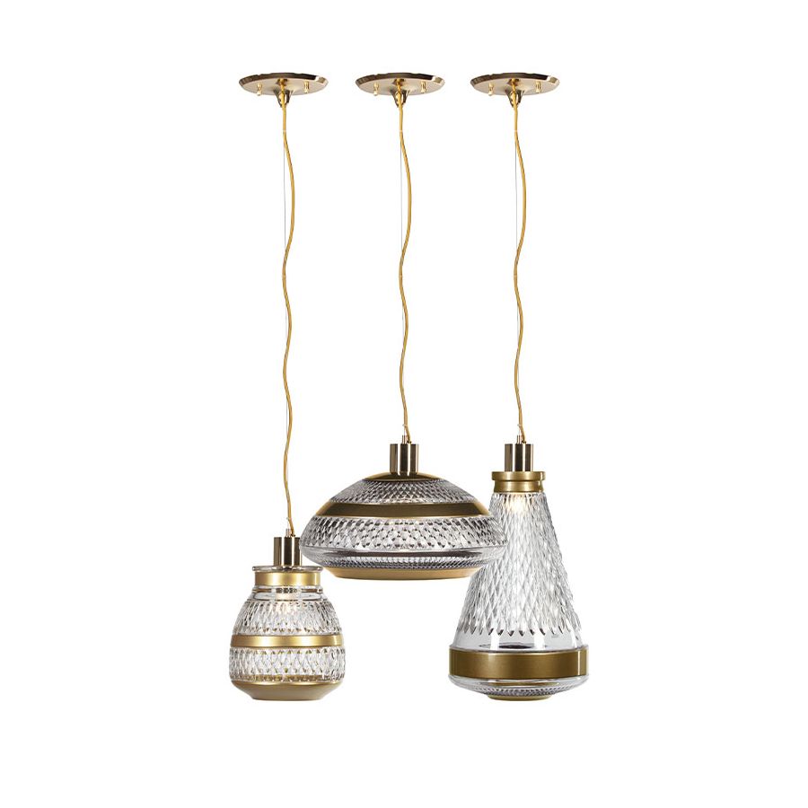 Taklampa från kollektionen Sin Definir är tillverkad av mässing och italiensk handskuren kristall.