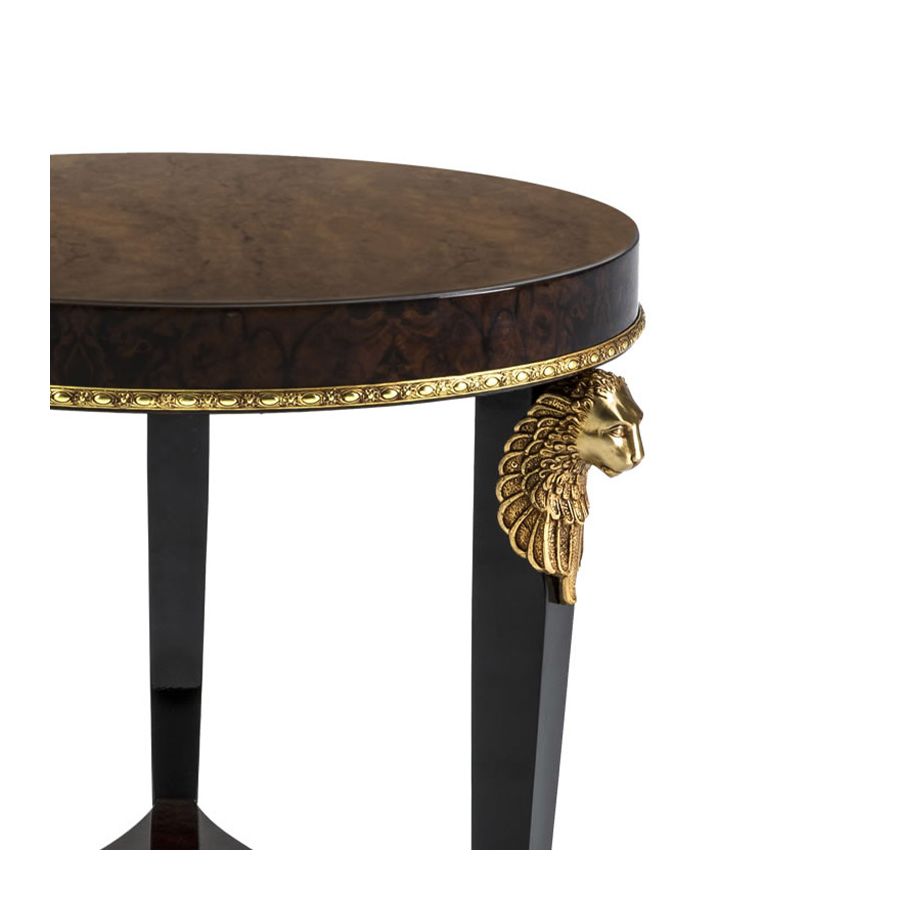 Sidobordet är gjort av valnötsburlfanér och gjuten brons.