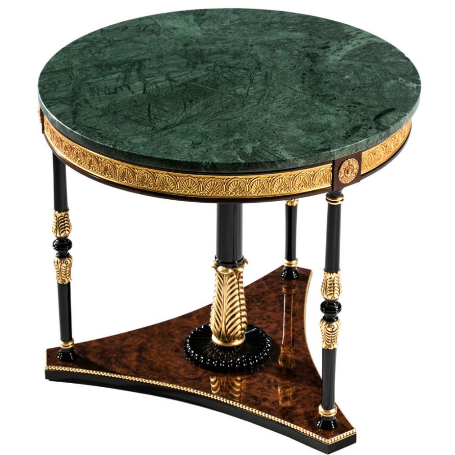 Det klassiska sidobordet är tillverkat av valnötsträ med franska gulddetaljer.