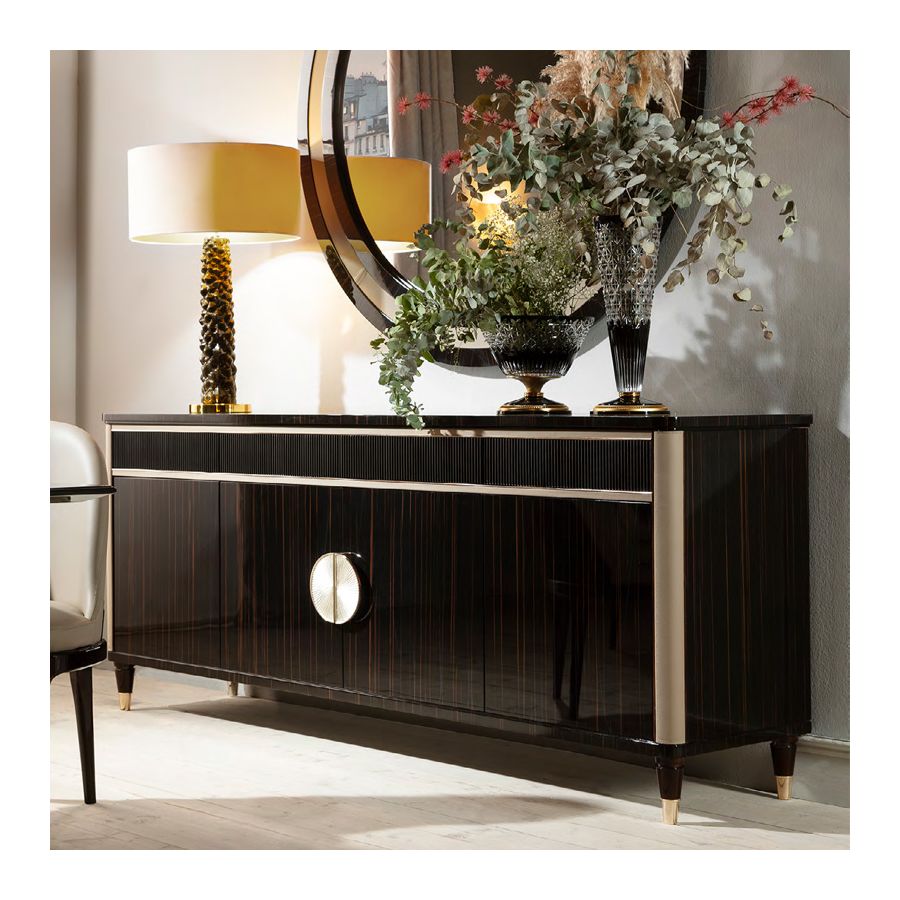 Skänk från Monaco-kollektionen är gjord av trä, metall och läderdetaljer.
