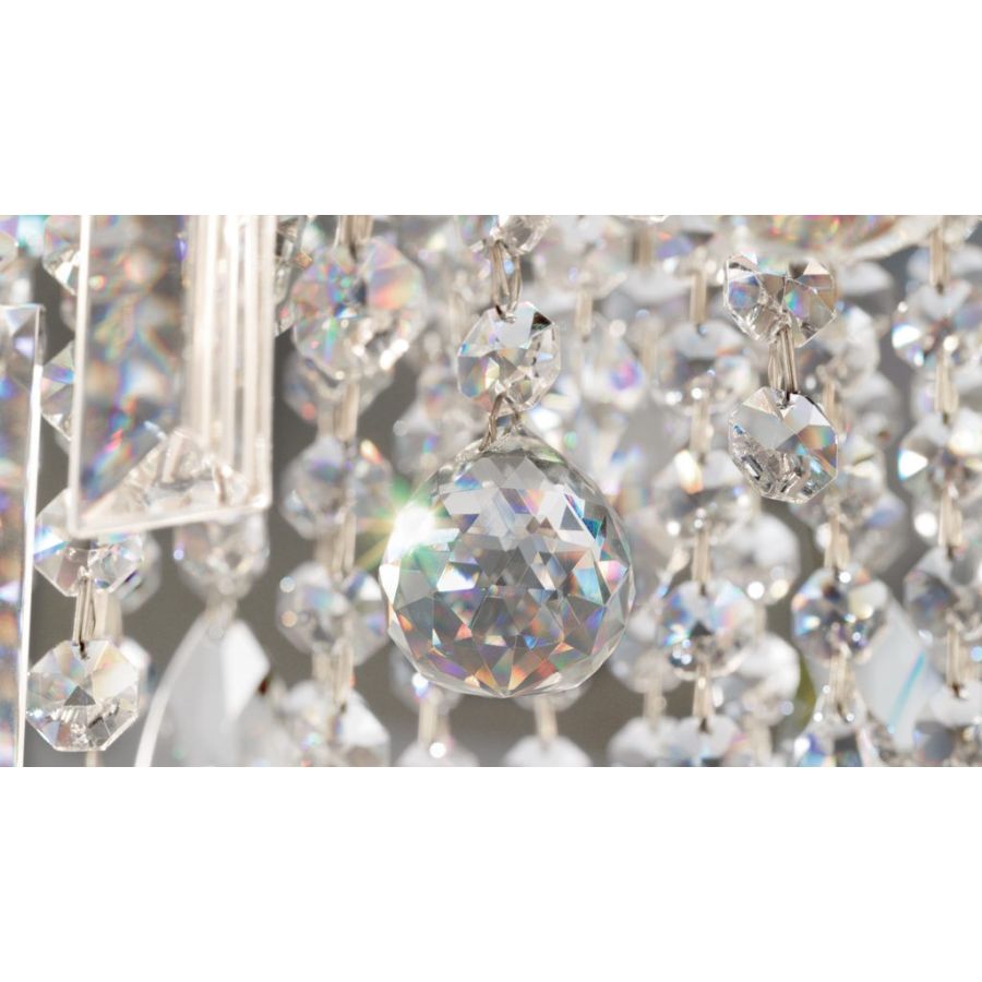 - Galvanised metal frame. Clear glass or clear crystal pendants.