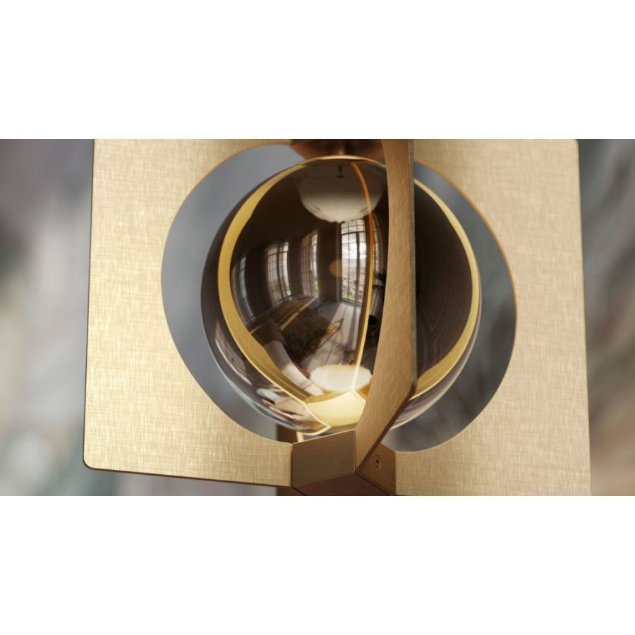 - Galvanized metal structure. Diffuser in shaded gold dichroic borosilicate.