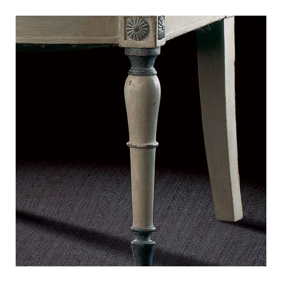 The attachment of the arm rests to the back is elegantly arranged in the extension of the line of the stiles. The original hexagonal arm rest head should be noted. Similar chairs were made by the sons of George Jacob who, assisted by their father, set up a company. Their stamp was “Jacob Freres rue Meslee”, but as at this time the obligation to stamp was no longer in vogue, only some have come down to us signed.
