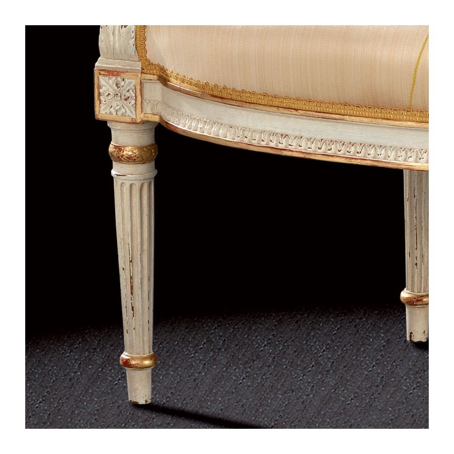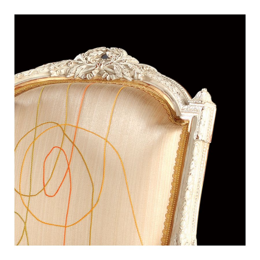 Reproduction of antique model. Louis XVI Cabriolet armchair Louis XVI Style French style period reverting to classicism, inspired by the straight lines of ancient Greece and Rome, from 1777 to 1790, corresponding roughly to the reign of Louis XVI (1774 – 1793). The period, and the intermediate styles coming in between Louis XV and Louis XVI are known as “transitional” in the trade and “neoclassical” by researchers.