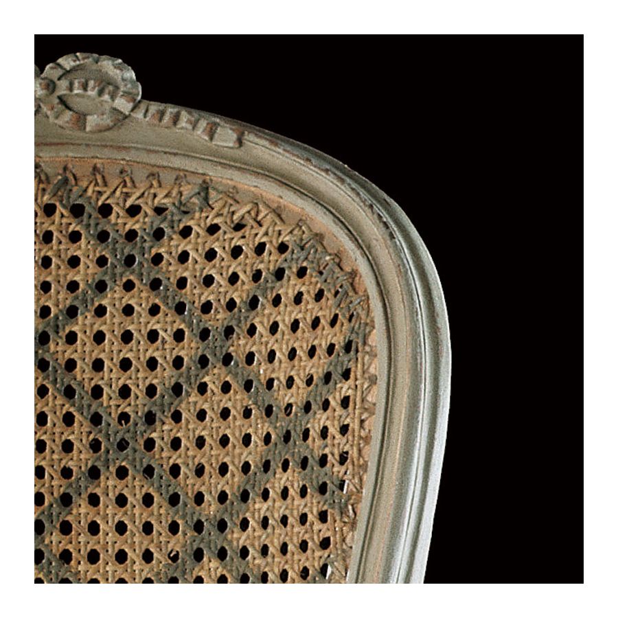 Reproduction of antique model Louis XVI Ruban Chair Caned Back Montgolfiere backed Louis XVI chair, circa 1778- 1780. The forms of the back and the seat, the design of the mouldings, the arrangements of the fluting and the sculpted ribbon tell us that this Paris chair comes to us from the early Louis XVI style, but, oddly enough, a little before the exploits of the de Montgolfier brothers (1783). The rounded knees are also a sign of quality, and are said to originate from the wishes of Louis XVI who is said not to have wanted corners he might bump into.