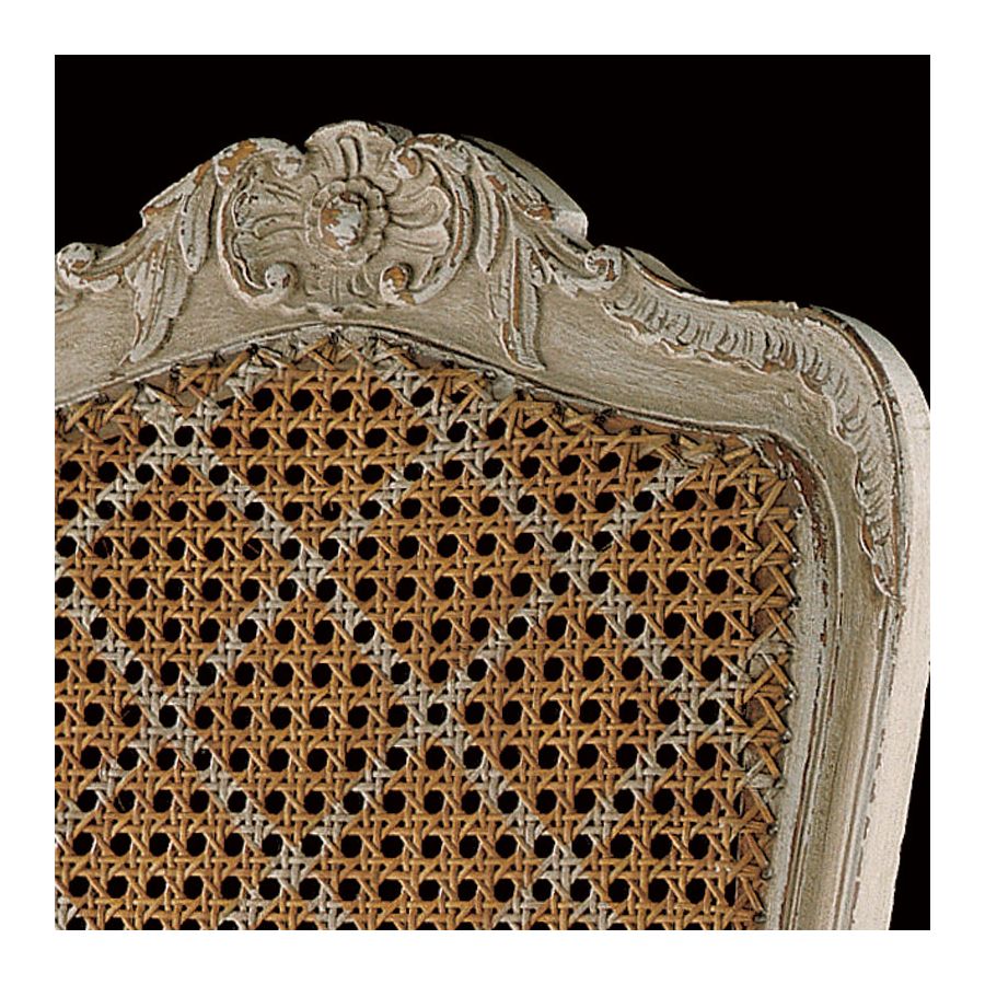 The characteristics of this style are present here - no deep mouldings, carvings of medium depth, rocaille elements (in the centre of the stretchers, on the legs and on the edges of the rails and the back). This chair has a stretcher, as does the matching armchair (RTF1) which is quite frequently found on this type of model, which is simple and elegant. It is fully-caned, as was dictated by the fashion of the time.