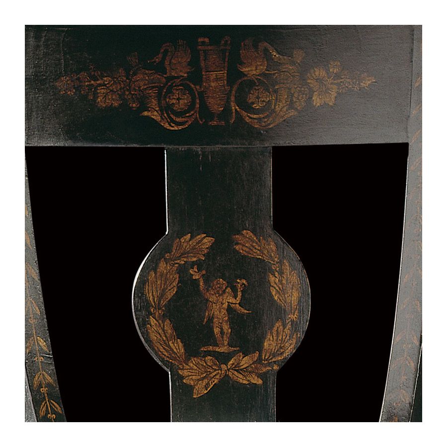 Reproduction of antique model. Original : private collection (Austria). This chair could very well be dated before the period of the last brother of Louis XVI : Charles X, but its lightness corresponds to this style. It has grace without ostentation. The Jacob legs, invented by Jacob - Desmalter will be noted. François Honore, one of the brothers running the company Jacob Freres, founded with his father Georges the company Jacob - Desmalter et Cie at Rue Meslee in 1803 (until 1925). This company was very important indeed at the time. Restauration Style A style continuing the Empire style after Waterloo, but not always showing signs of definite change, on the return to power of Louis XVIII, the brother of Louis XVI.