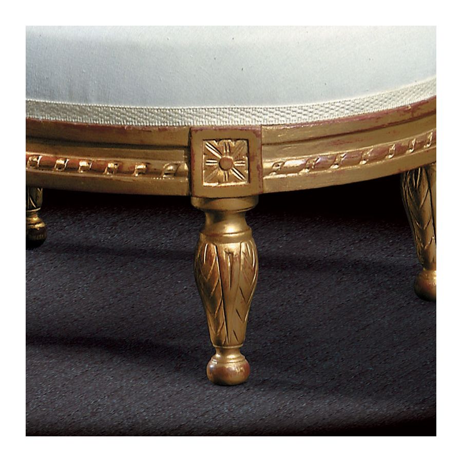 Reproduction of antique model. Louis XVI Oval footstool Louis XVI Style French style period reverting to classicism, inspired by the straight lines of ancient Greece and Rome, from 1777 to 1790, corresponding roughly to the reign of Louis XVI (1774 – 1793). The period, and the intermediate styles coming in between Louis XV and Louis XVI are known as “transitional” in the trade and “neoclassical” by researchers.