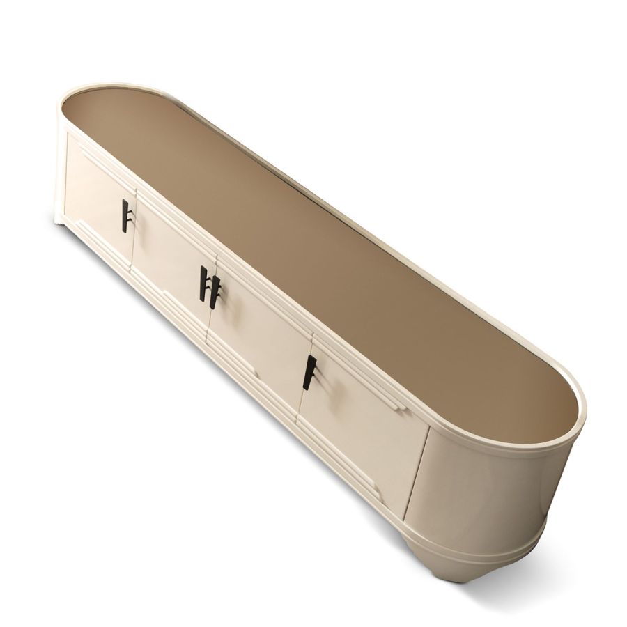 An elegant and clean sideboard with simple but uncommon shapes. The items of Jazz collection with its Art Deco lines let relive the style and class typical of the first 1900s years. The combination with materials, colours, and contemporary production tecnologies creates the perfect union to let everyone feel well at home, a fresh and new home, with a “liberty” memento.