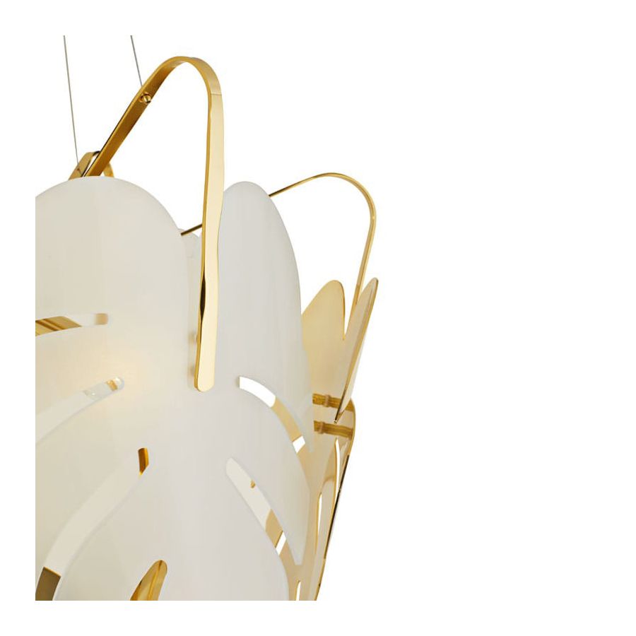 A metal structure in galvanic gold enriched with precious stylized leaves and available in galvanic gold or satin crystal glass.